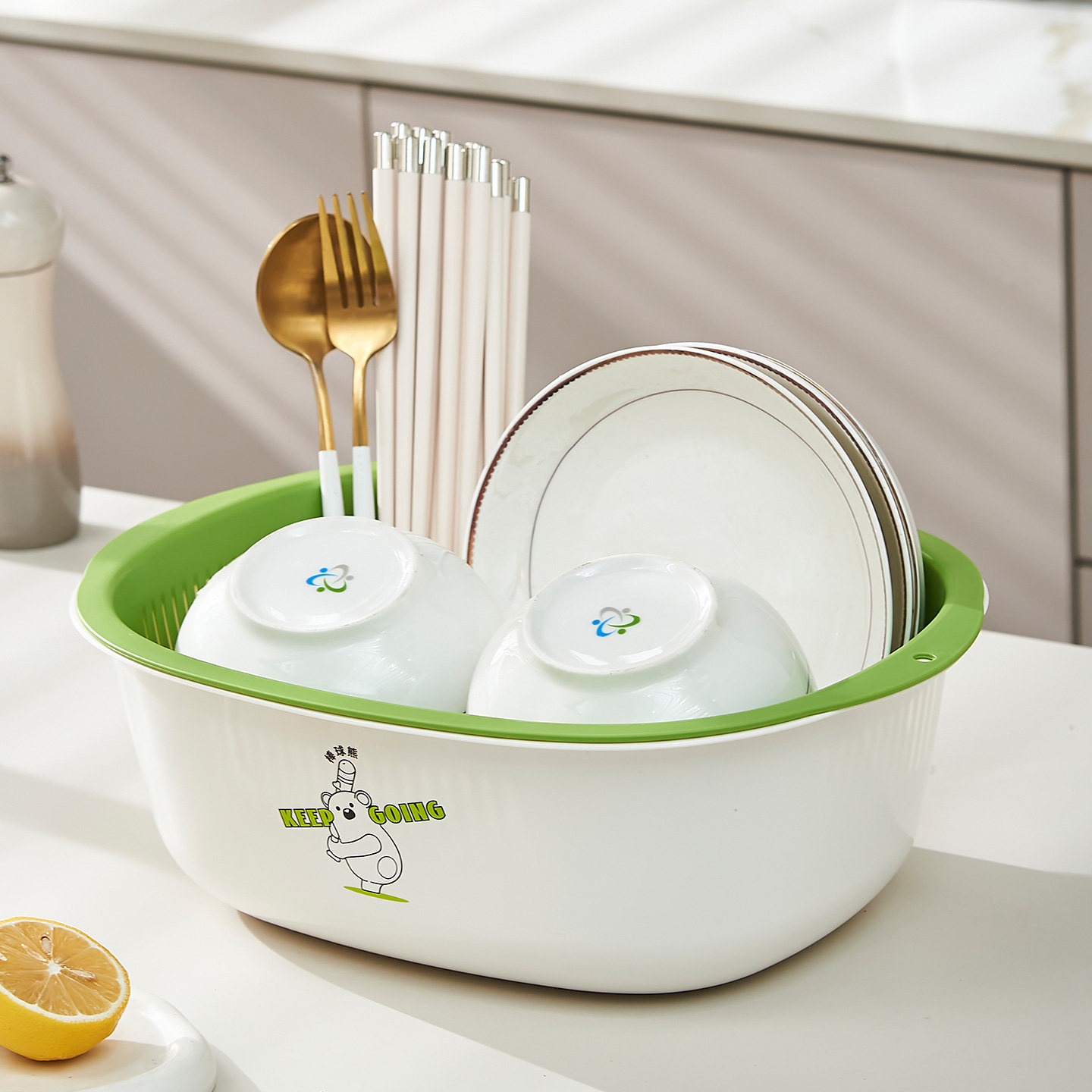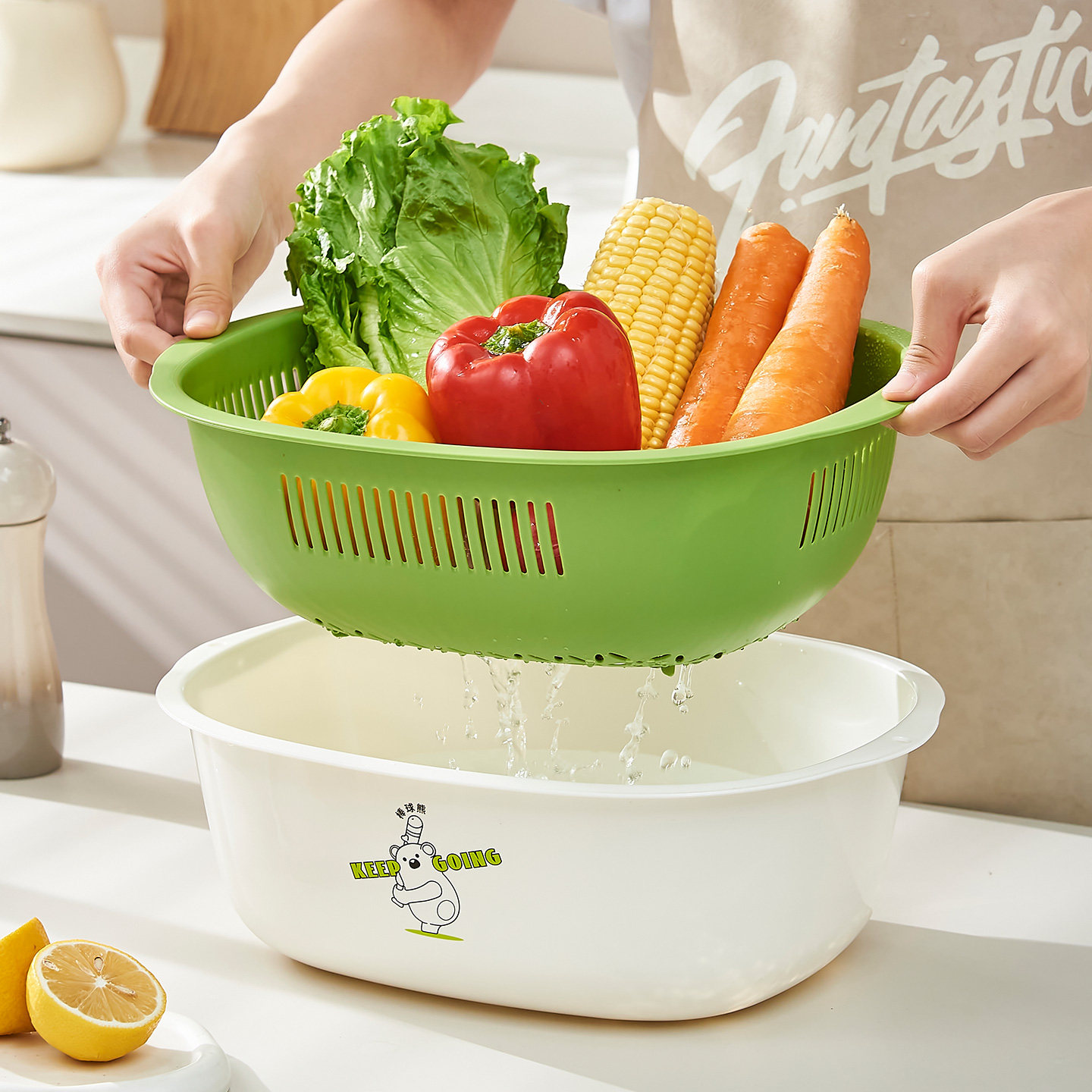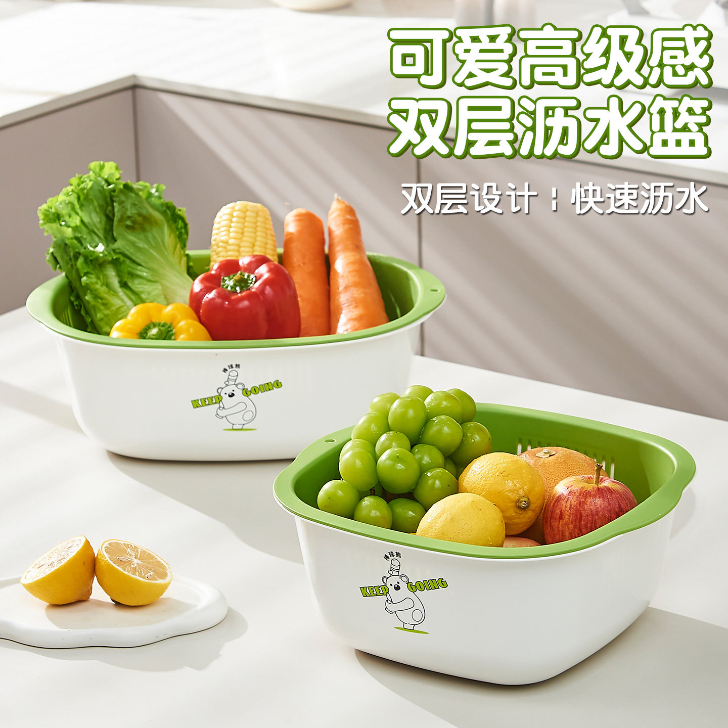 双层洗菜盆沥水篮家用客厅塑料水果盘加厚厨房滤水菜篓淘米洗菜篮