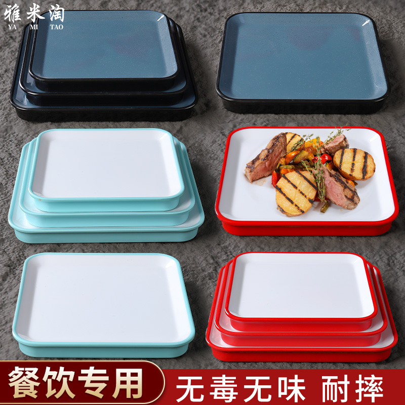密胺餐具酒店热菜自助餐四方平盘高级感仿瓷西餐厅牛排点心意面盘
