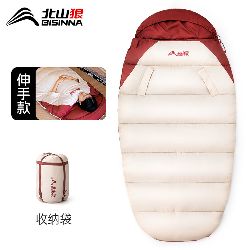 北山狼户外可伸手睡袋成人大码大人加厚防寒冬季露营野营帐篷睡袋