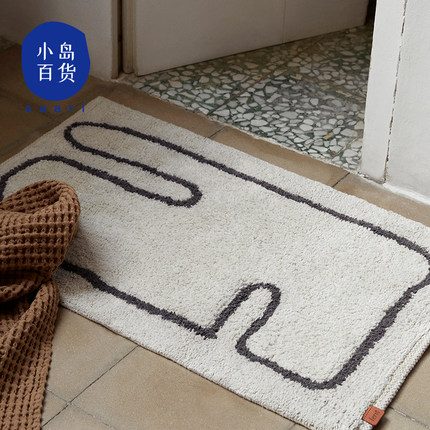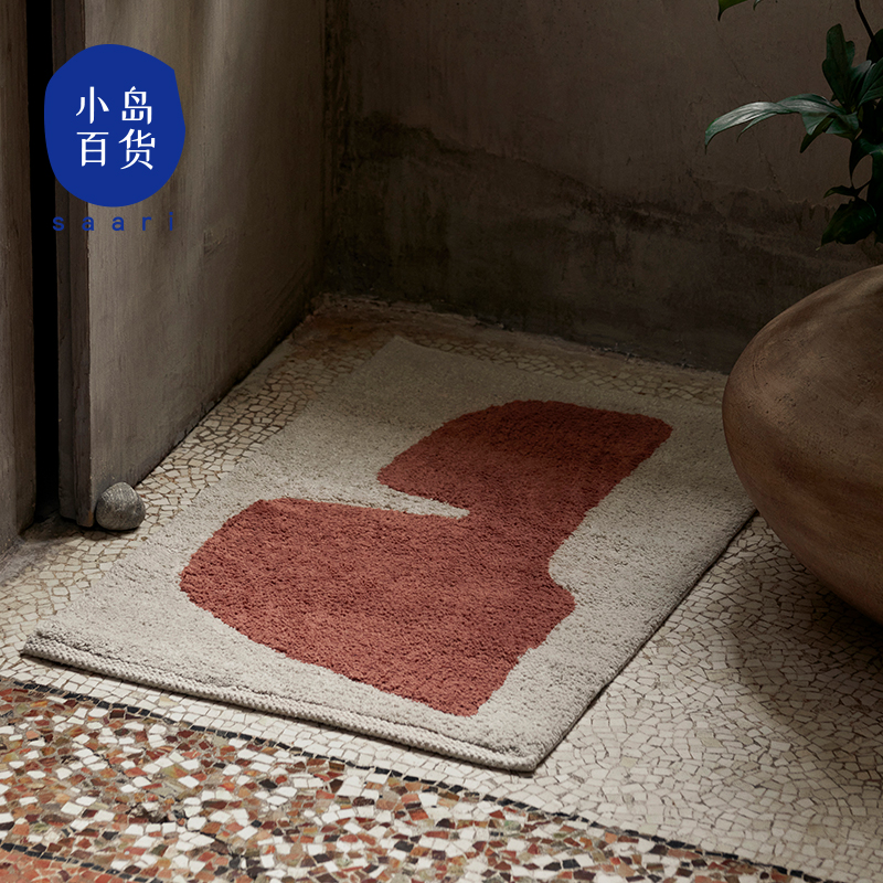 丹麦ferm LIVING地毯几何极简卧室床边毯秋冬短毛奶油风纯棉进口