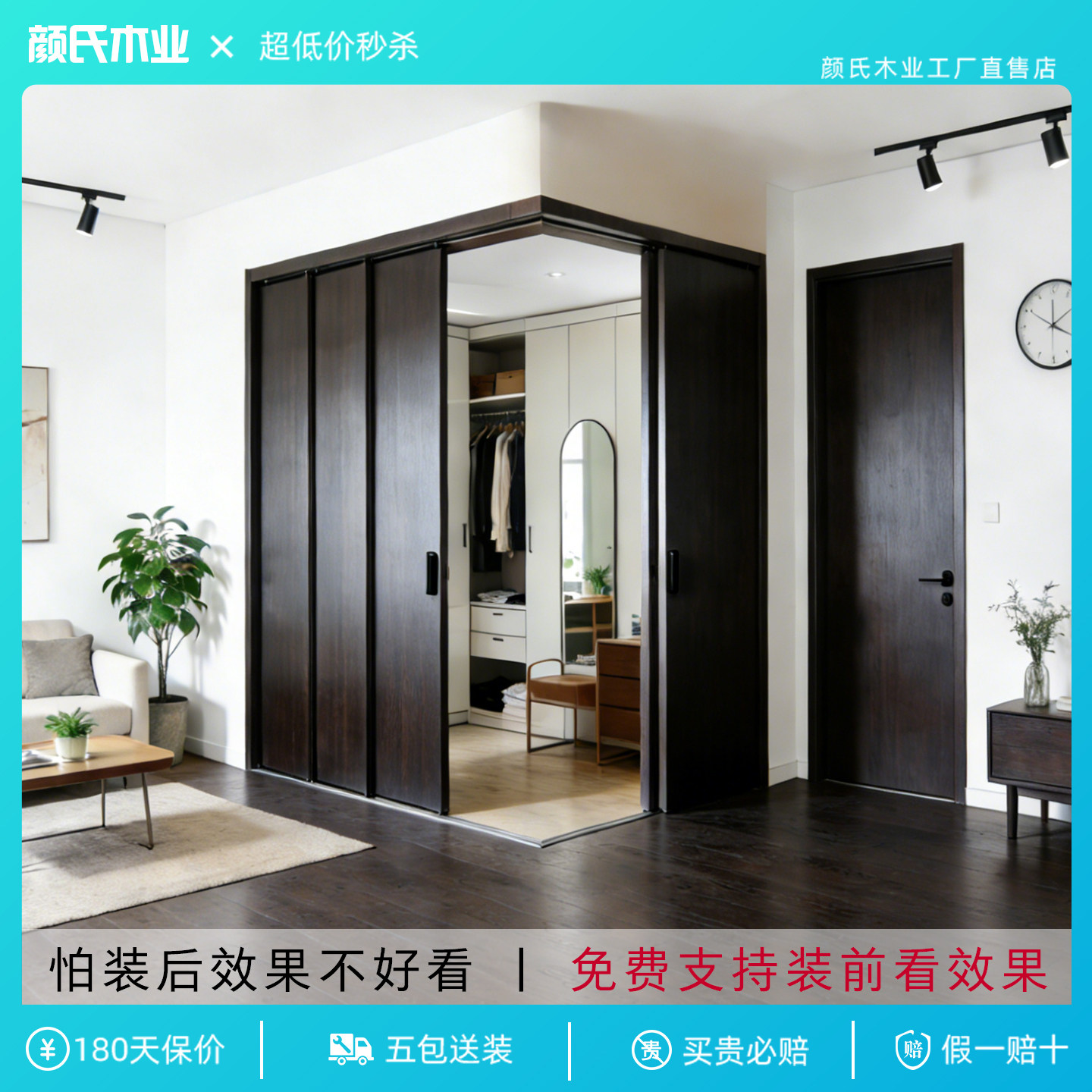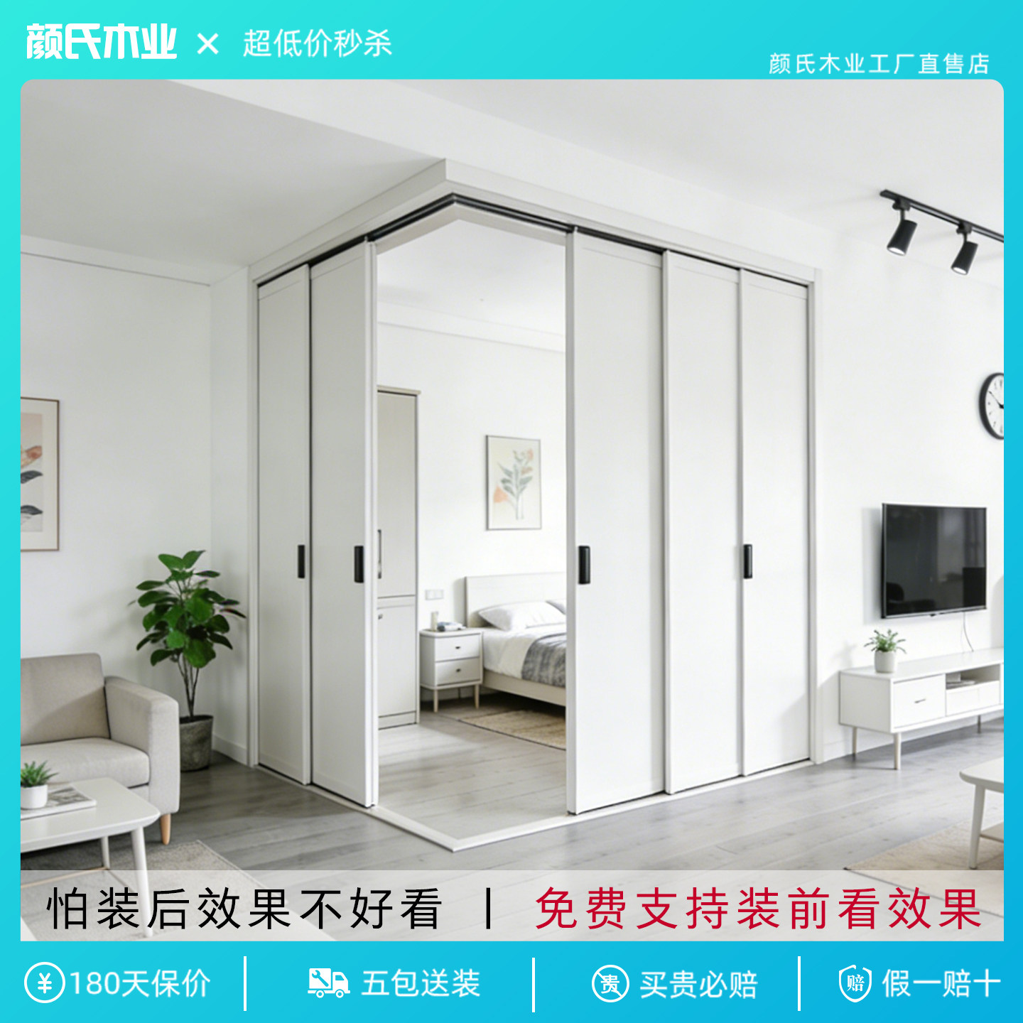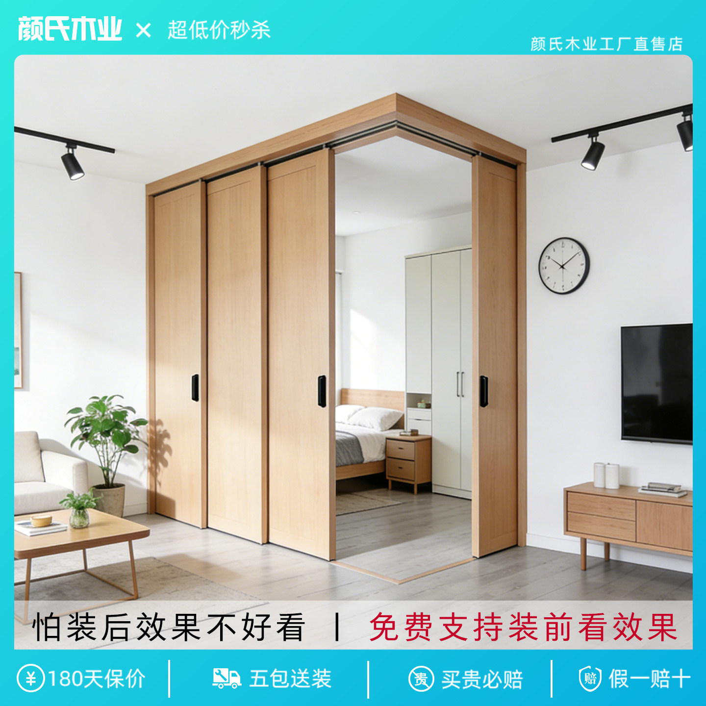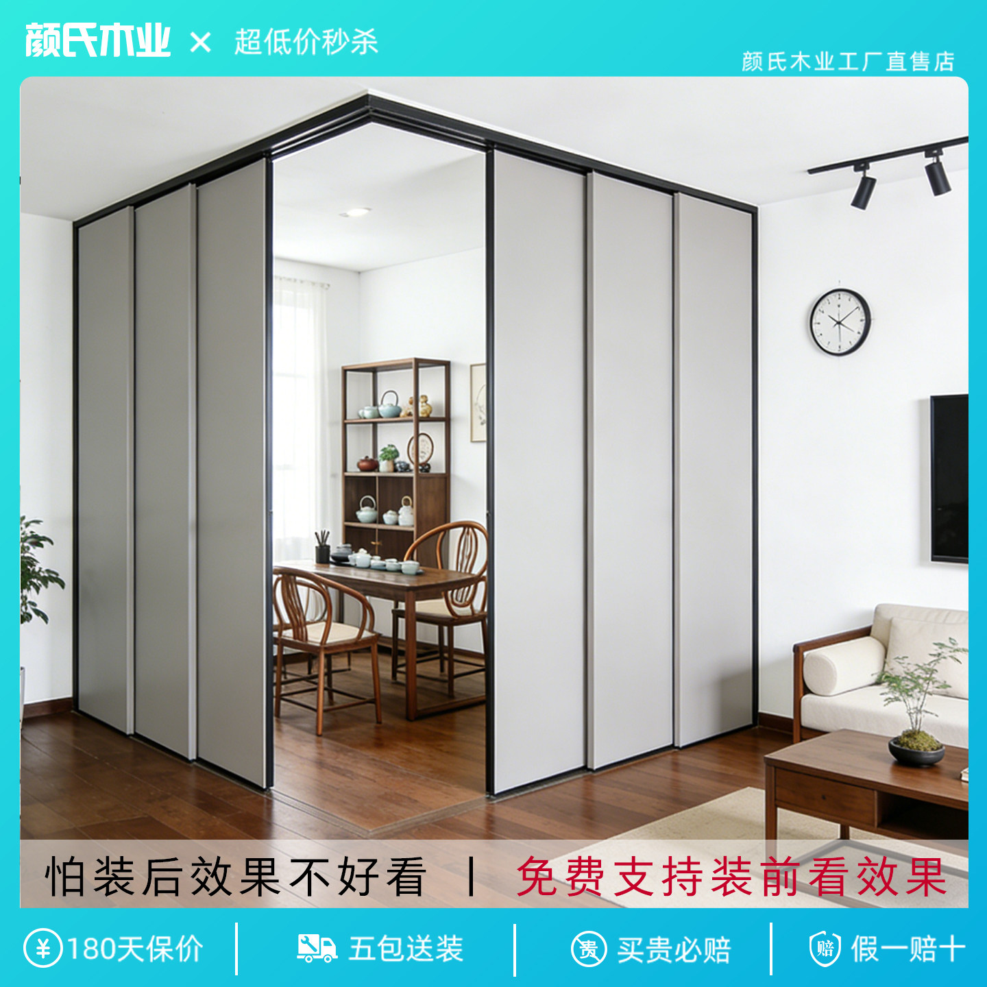三联动木门定制吊轨门实木隔断门客厅阳台厨房四联动门折叠推拉门