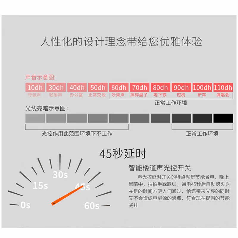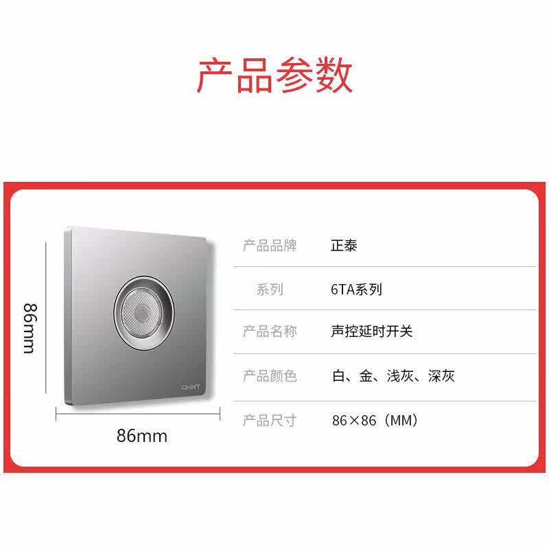 正泰声光控延时开关家用100W二线制光感暗装86型声控感应延时开关