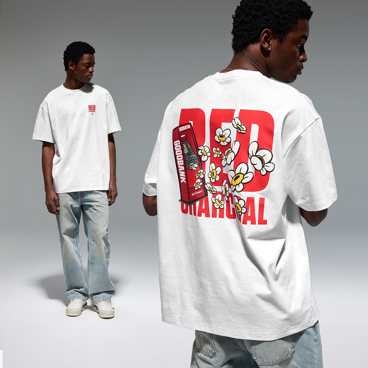 REDCHARCOAL红炭白色速干印花短袖T恤男夏季潮牌宽松情侣男士半袖
