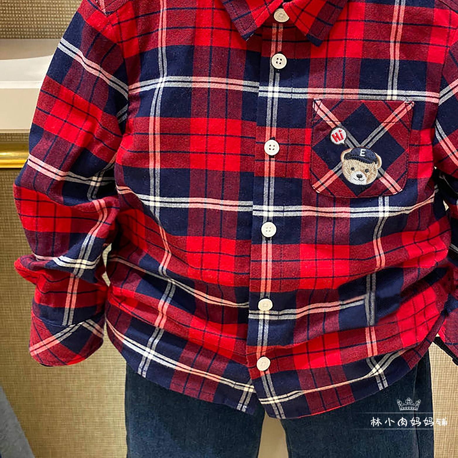 小熊童装24春秋款男童休闲格子长袖衬衫儿童帅气衬衣TTYC211101B