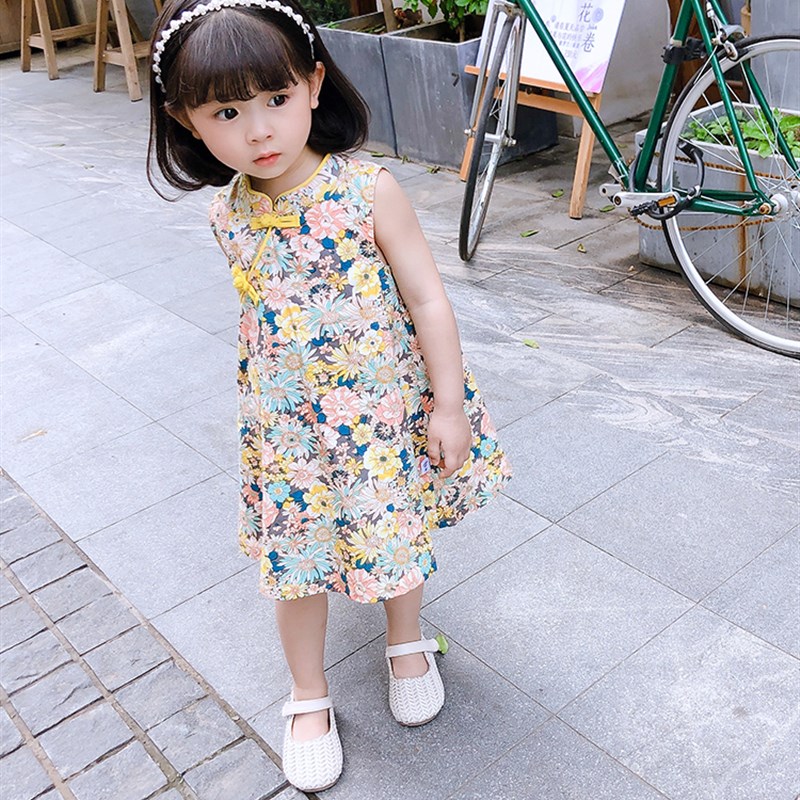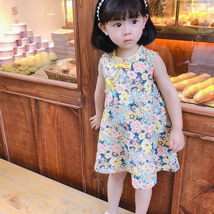 女童碎花改良旗袍裙夏季新款宝宝洋气中国风连衣裙小女孩背心裙子