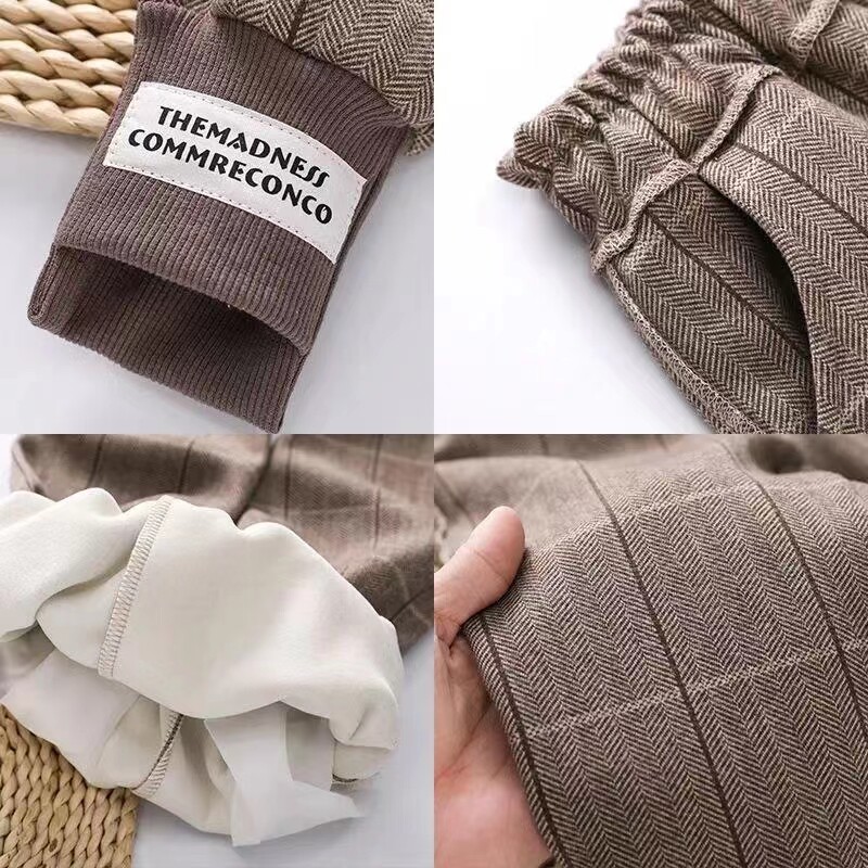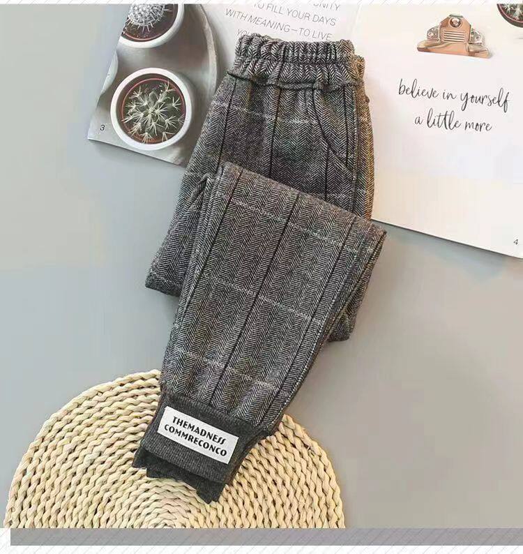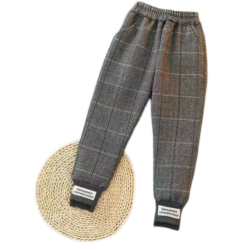 女童纯棉加绒加厚格子裤