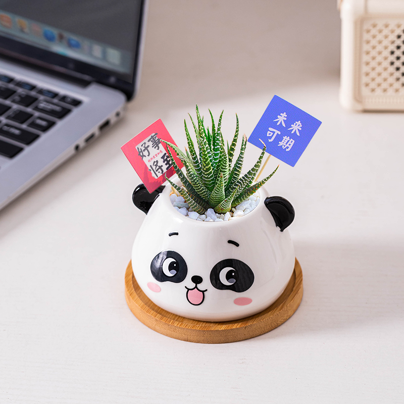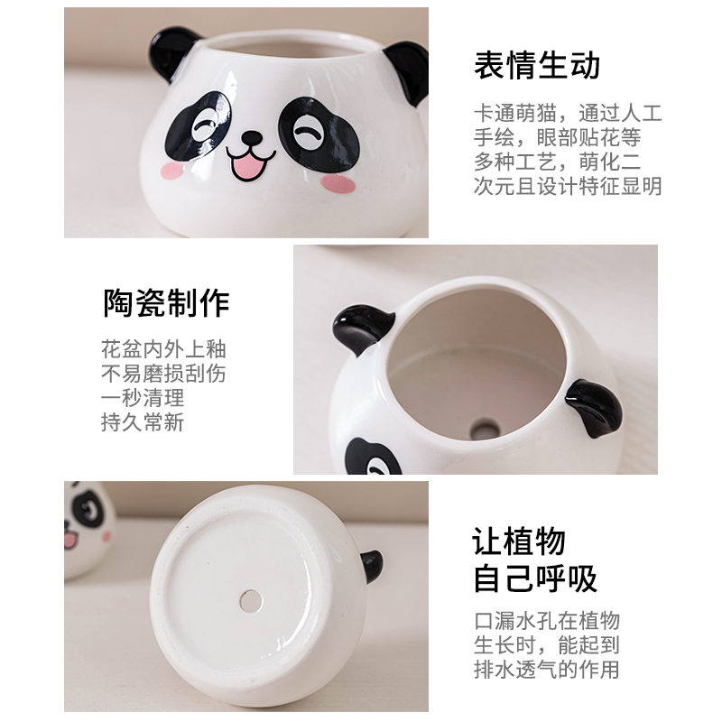 多肉花盆可爱卡通创意陶瓷盆新款小口径绿植透气仙人球盆栽带孔