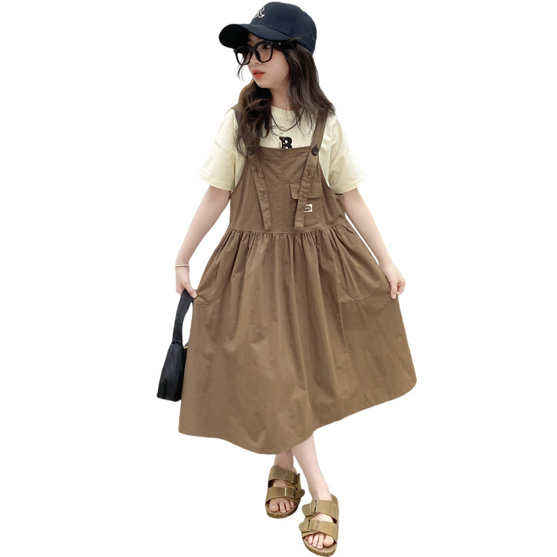女童背带裙套装夏装2025新款韩版洋气女大童夏季儿童装裙子两件套
