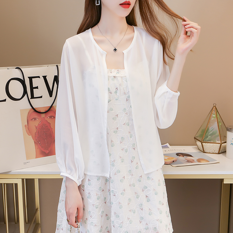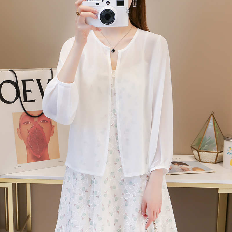 防晒衣开衫女夏季薄款外搭配吊带裙子的小披肩空调衫短款雪纺外套