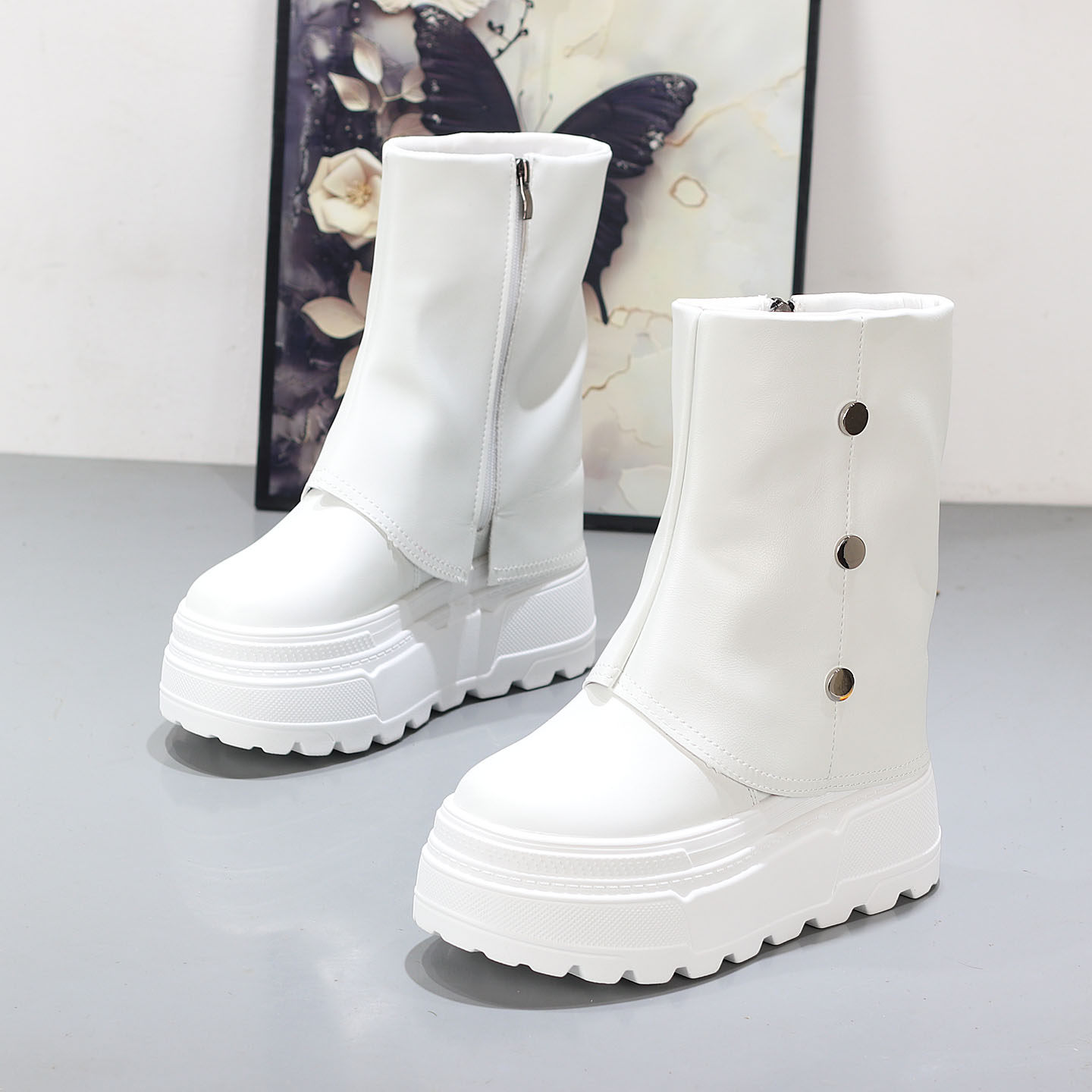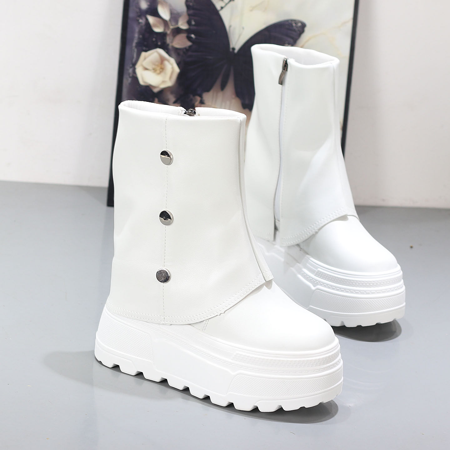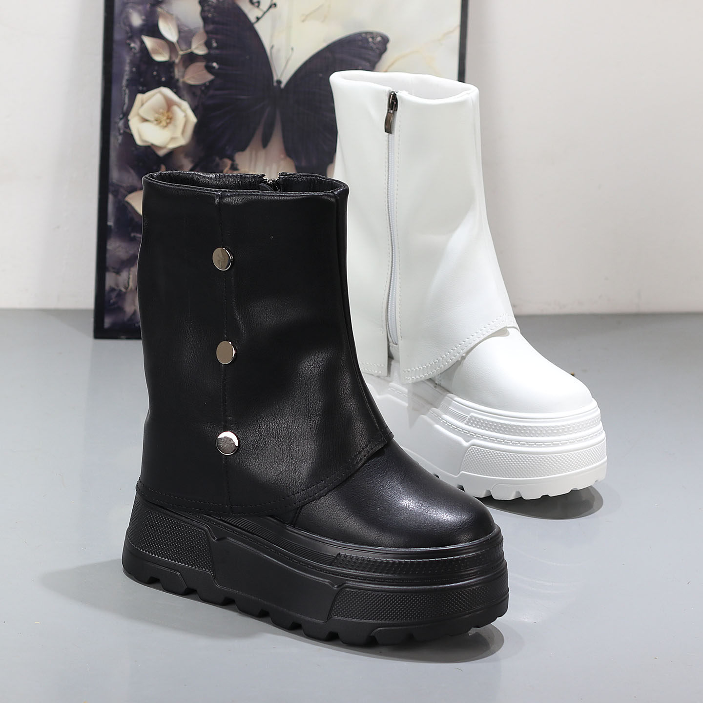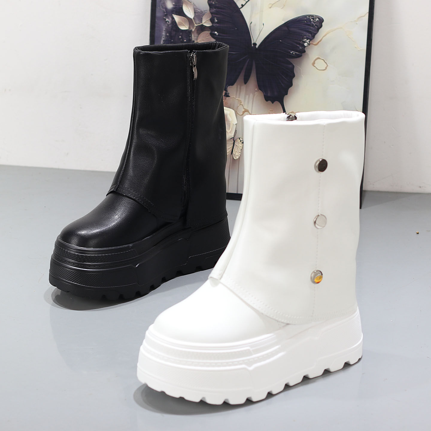 厚底加绒内增高10cm马丁靴女秋冬新款松糕休闲皮面烟筒靴坡跟短靴