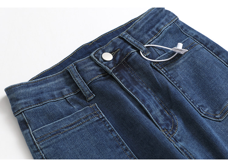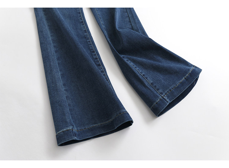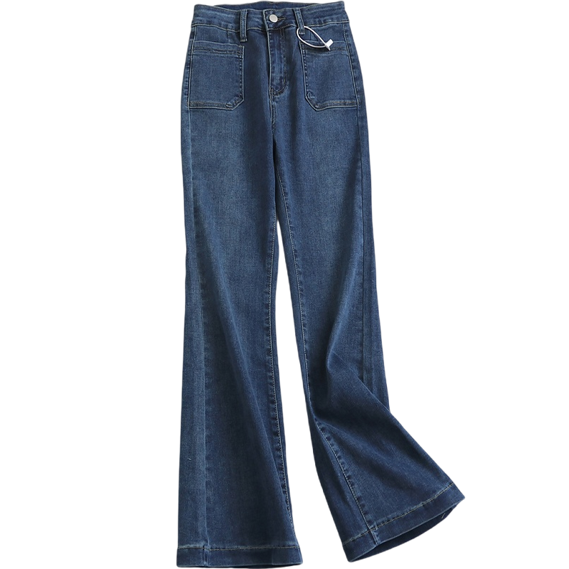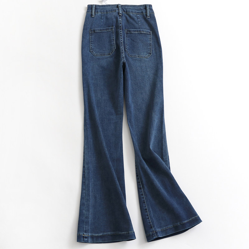 H686设计感高腰微喇叭牛仔裤女2023纯色显瘦弹力阔腿拖地裤子长裤