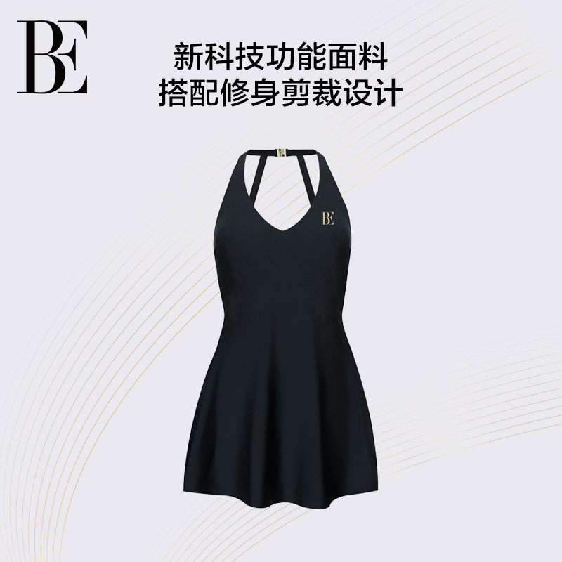 【江疏影同款】BE范德安连体裙式泳衣女小黑裙性感吊带显瘦泡温泉
