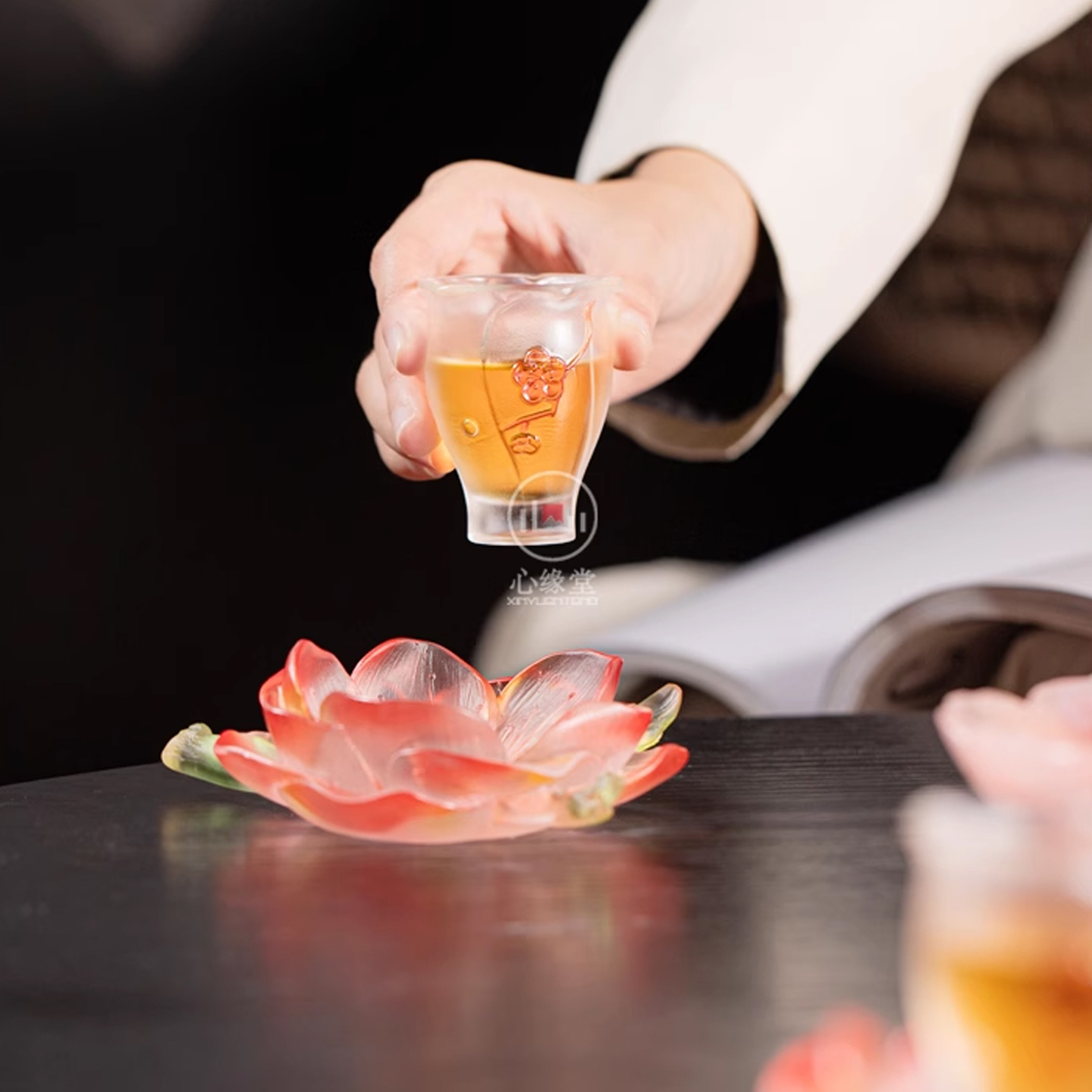 琉璃杯十二花神桃花紫薇茶杯主人杯托杯垫功夫茶具品茗杯