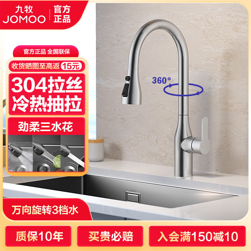 九牧卫浴抽拉厨房水龙头冷热洗菜盆洗碗池水槽万向旋转防溅33178