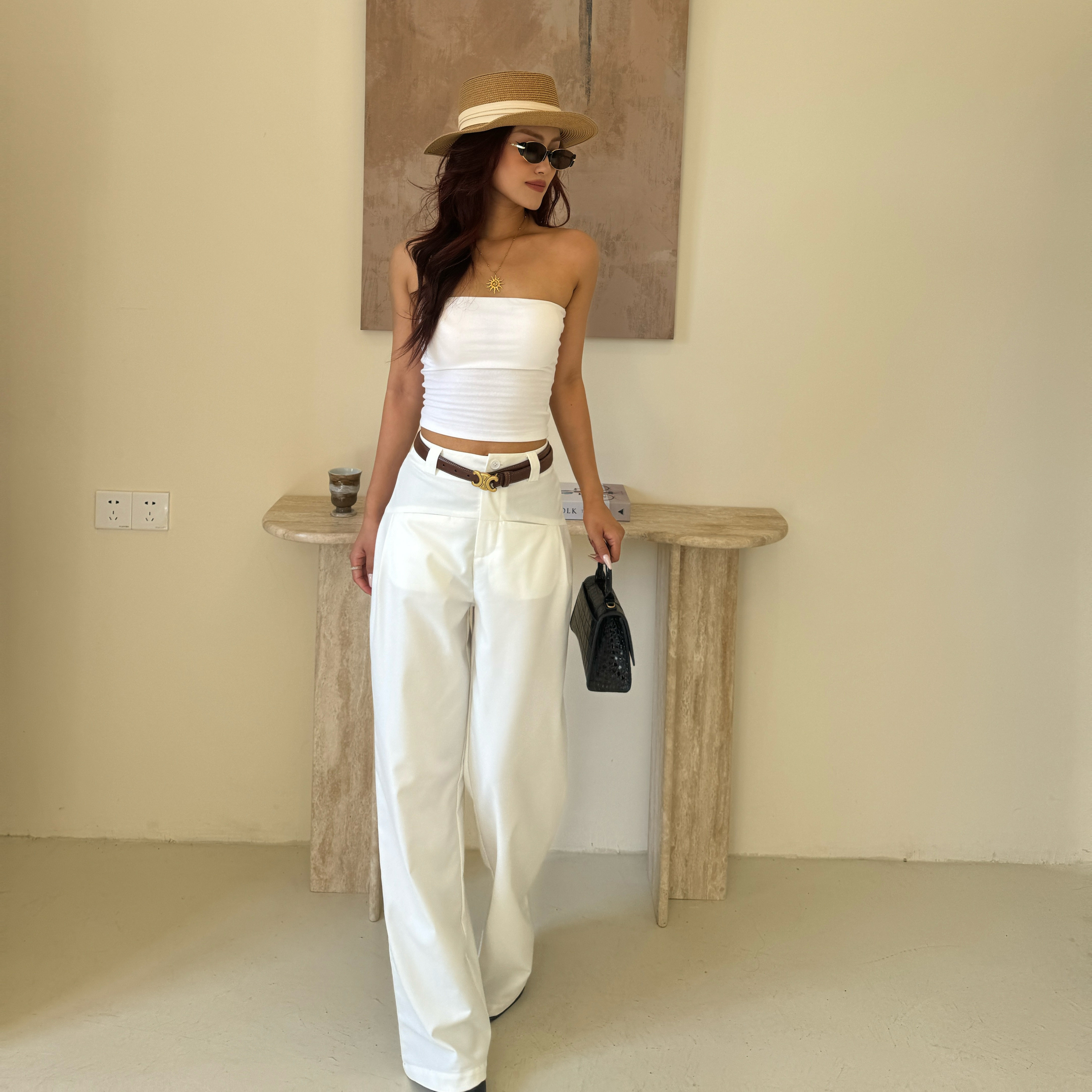自制极简休闲复古口袋高腰垂坠感直筒拖地通勤西装裤子2025新796