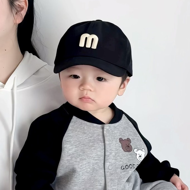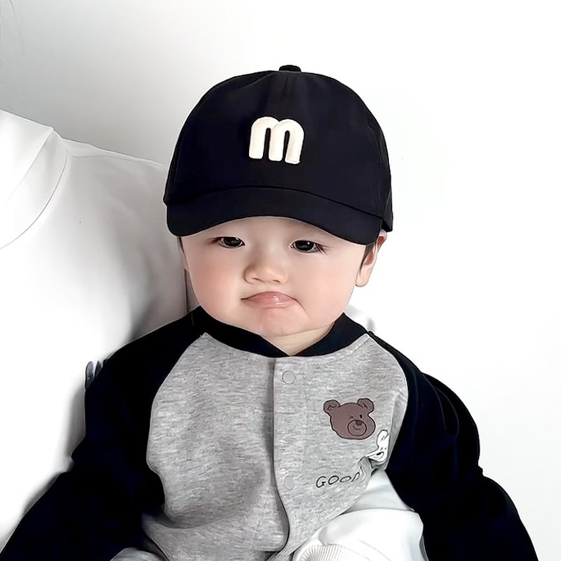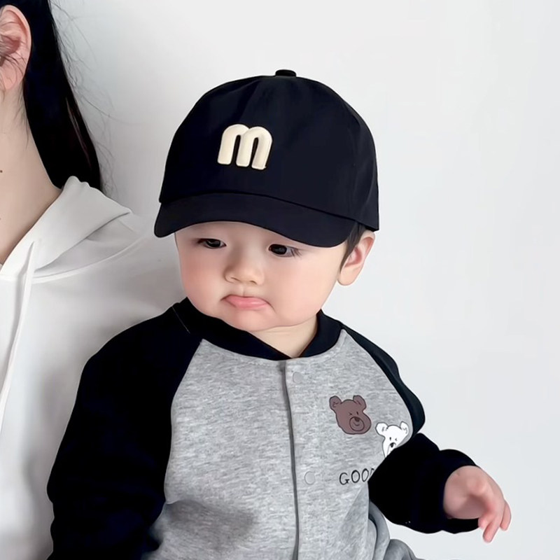 宝宝鸭舌帽短檐小月龄婴幼儿棒球帽帅气m字母男女童遮阳帽防晒帽
