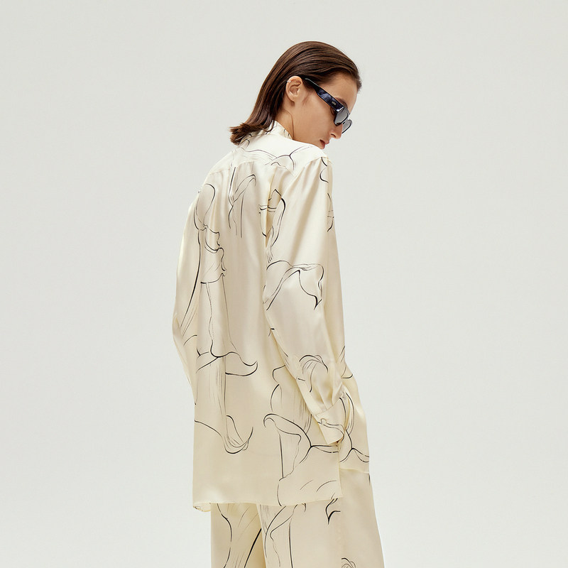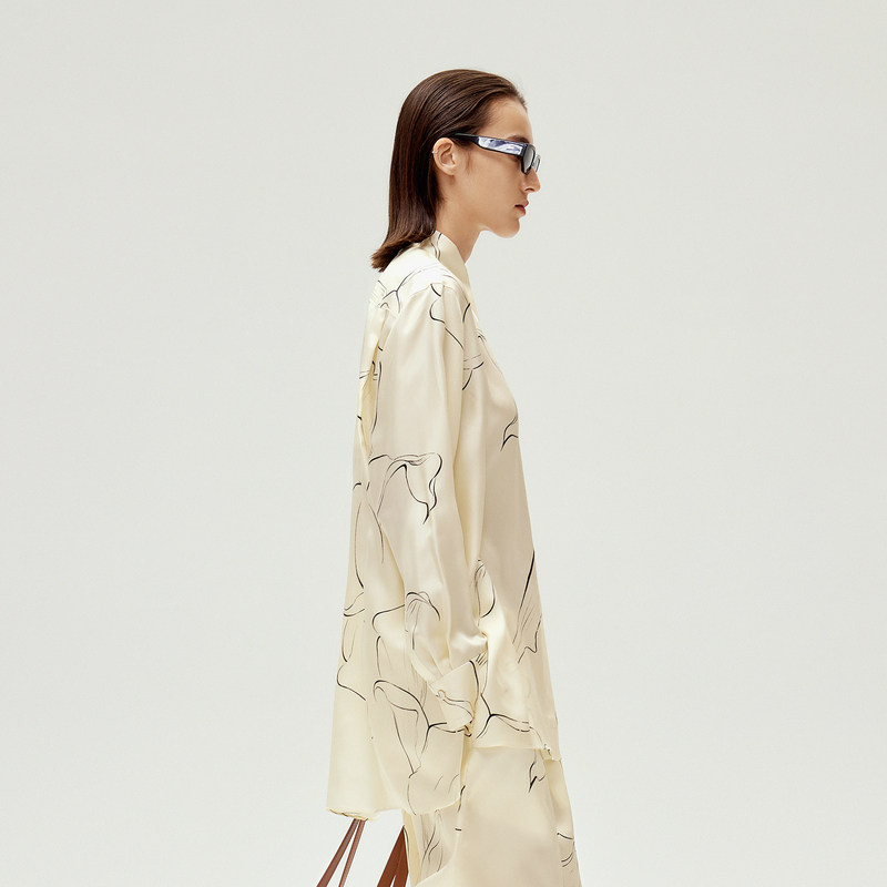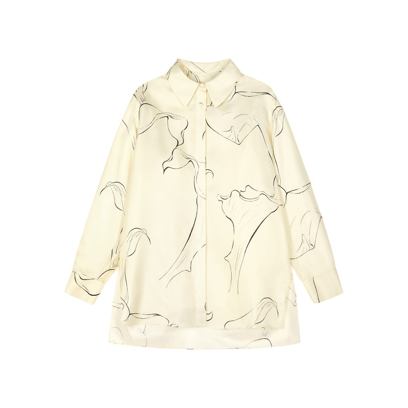【0压系列】LESS春手绘马蹄莲线条宽松桑蚕真丝长袖衬衫2O2213400