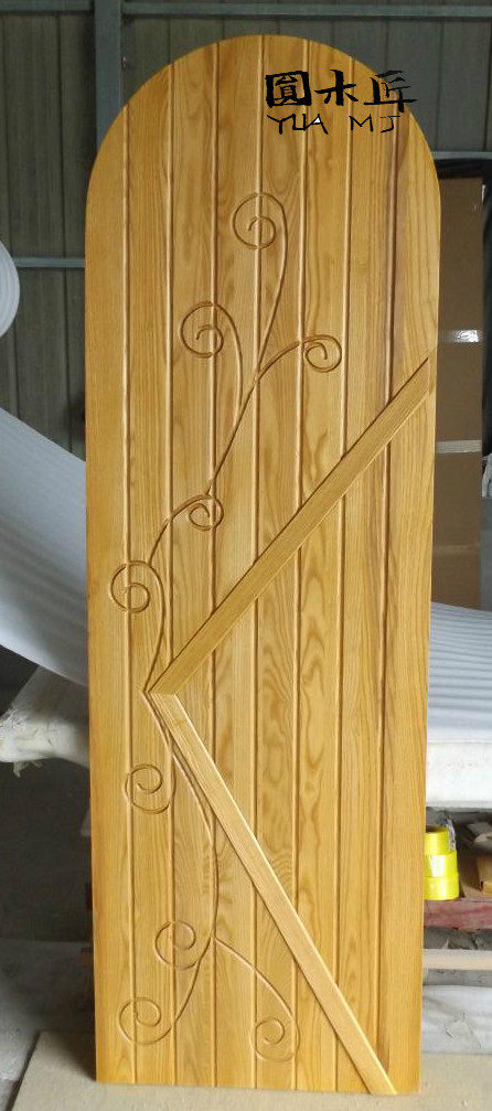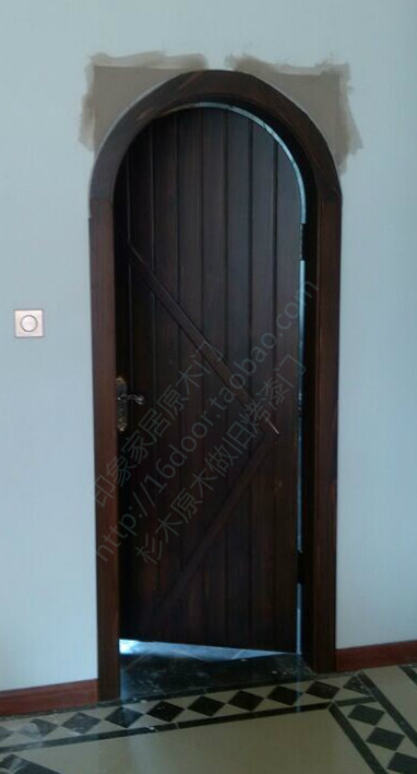 圆木匠拱形实木门 纯原木室内房间门全木门弧形门平开复古卧室门