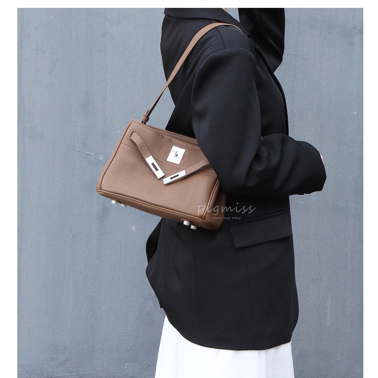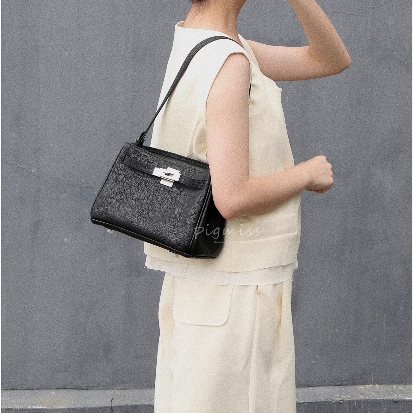 【PIGMISS】头层牛皮凯莉包包2025新款单肩斜挎小包女真皮腋下包