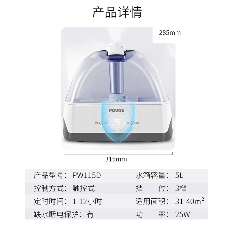 奔腾加湿器PJ1201 PW115机械款5L大容量