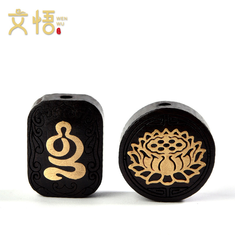 天然檀木镶嵌莲花散珠紫檀手链串珠黑檀手串配珠佛珠文玩珠子配件