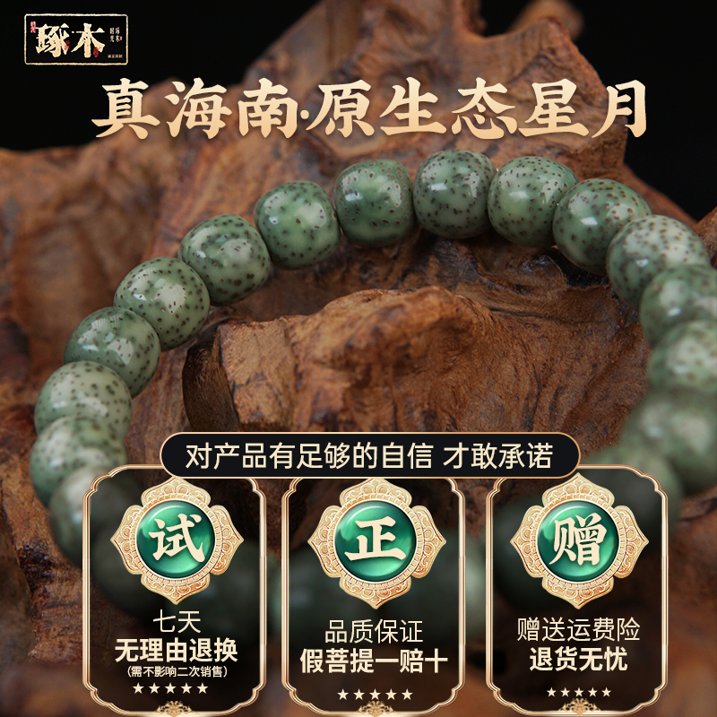 真海南星月菩提手串绿幽灵原生态石玉料月朗星稀单圈饰品男女文玩