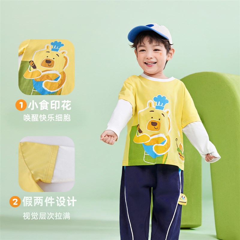 男童假两件T恤春装宝宝长袖上衣婴儿打底衫女童衣服春款儿童童装