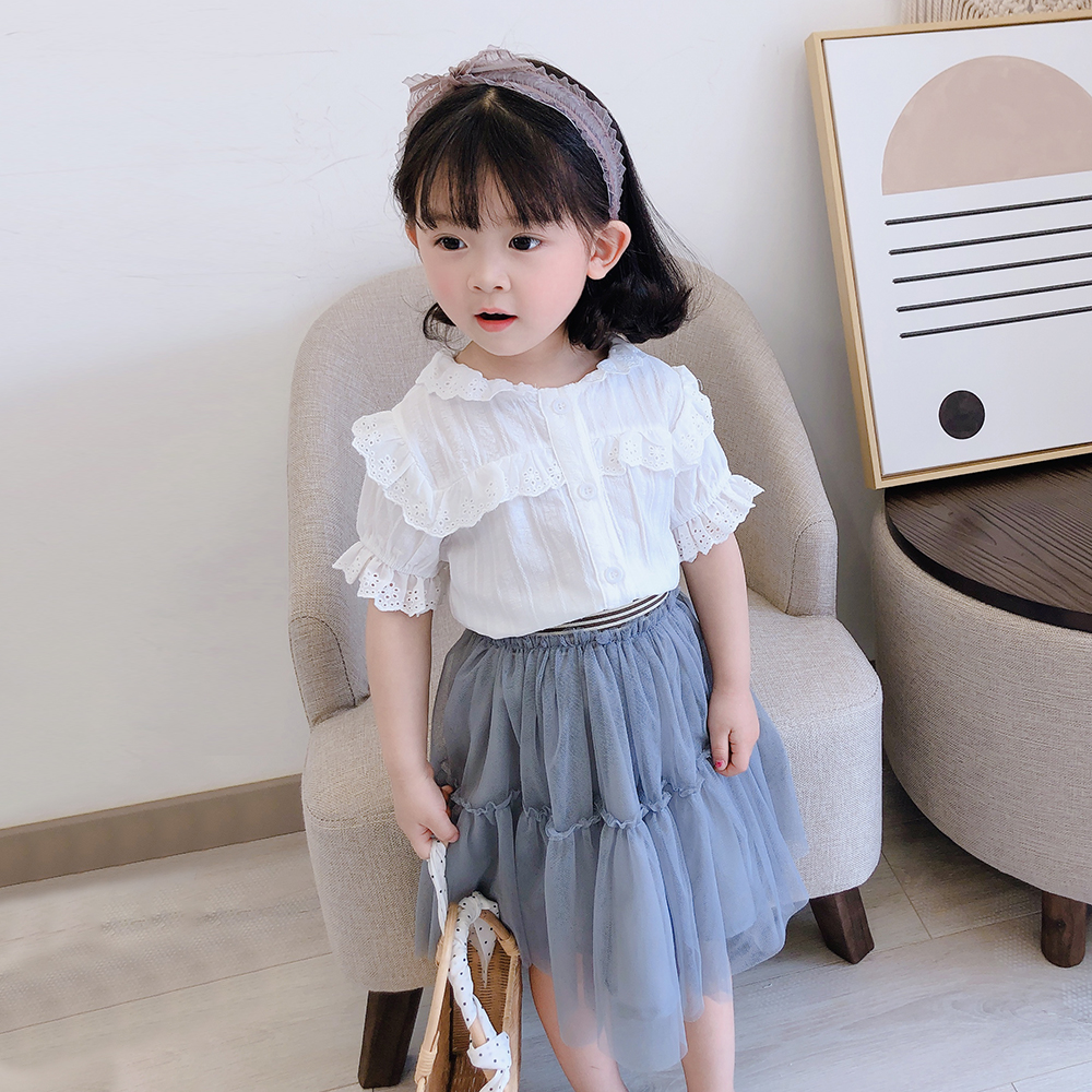 宝宝洋气蕾丝短袖衬衫韩版女童