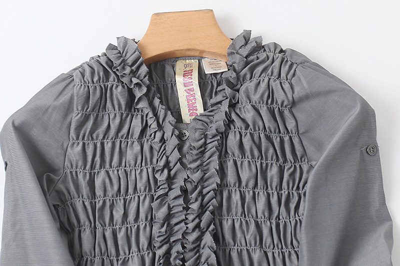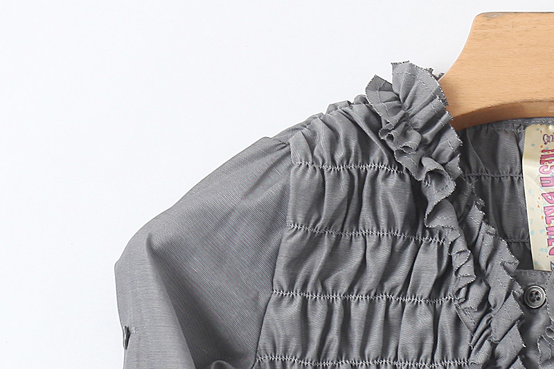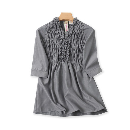 童装V领木耳边连衣裙 夏季新款修身衬衫裙 女中大童纯色裙子U/1-4