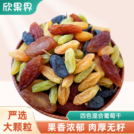 欣果界新疆葡萄干无籽大颗粒一级提子干混合四色葡萄干果干零食