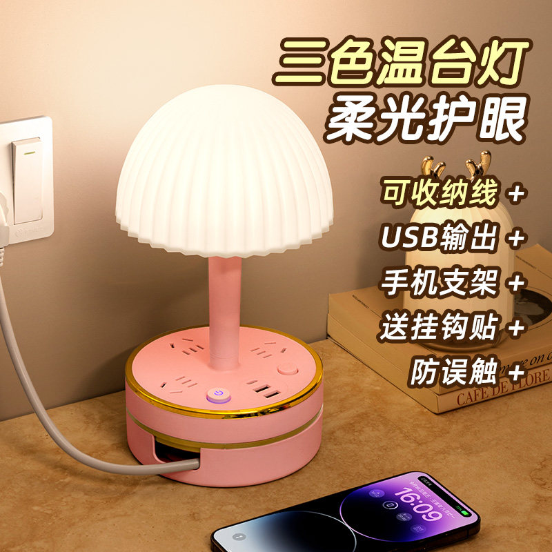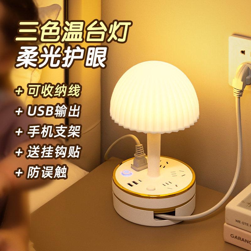 插座护眼台灯多功能带USB插排插板家用床头灯学生宿舍带线插线板