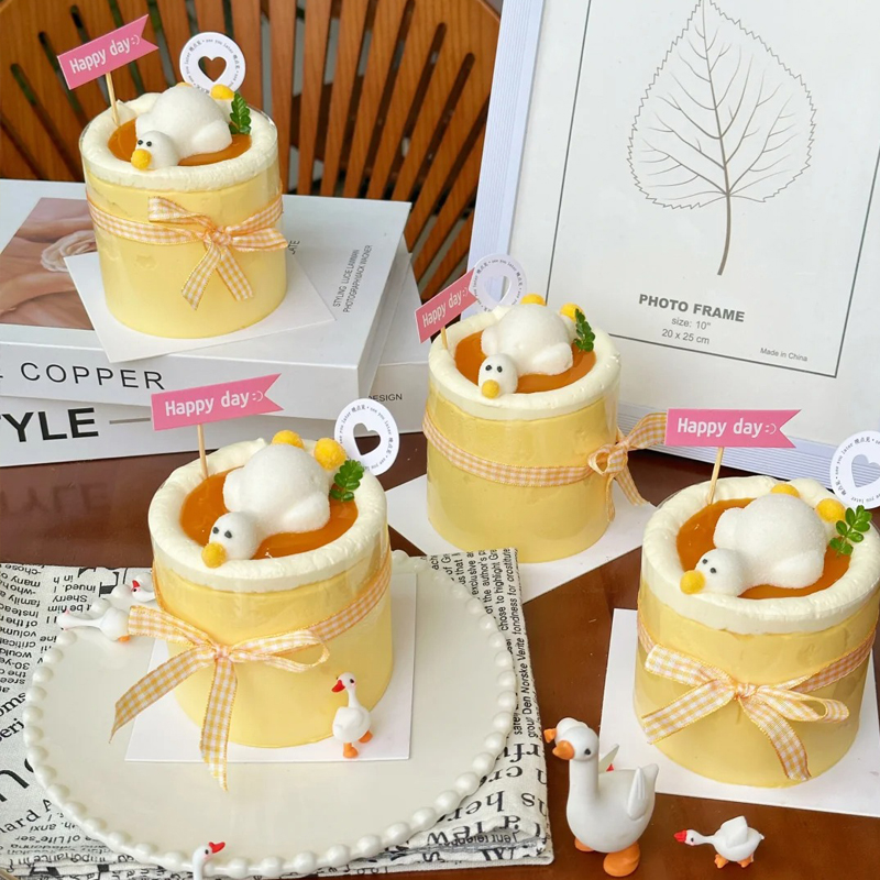 3d网红躺平鸭棉花糖蛋糕装饰摆件