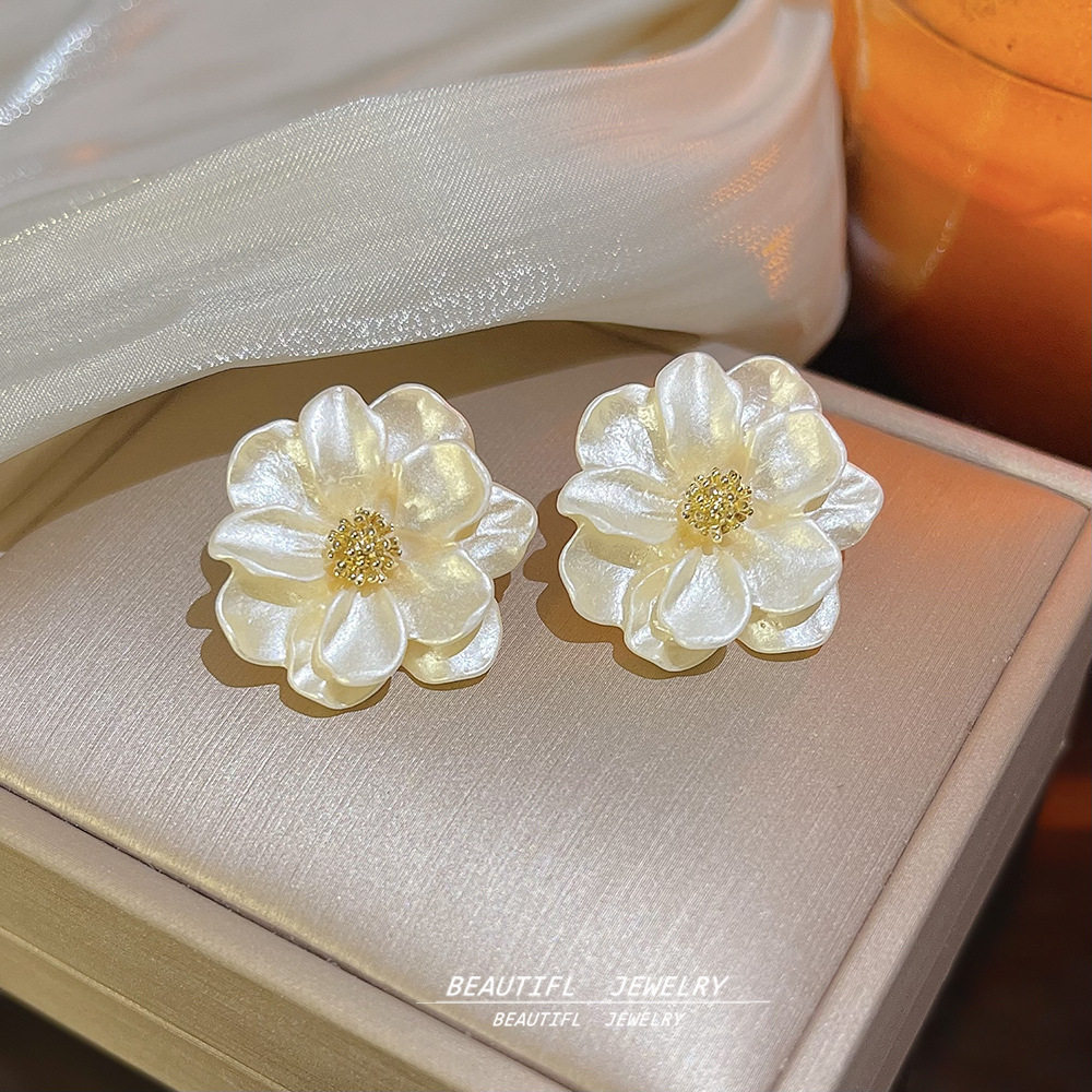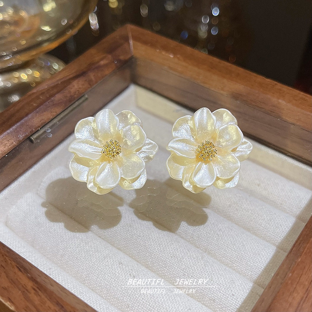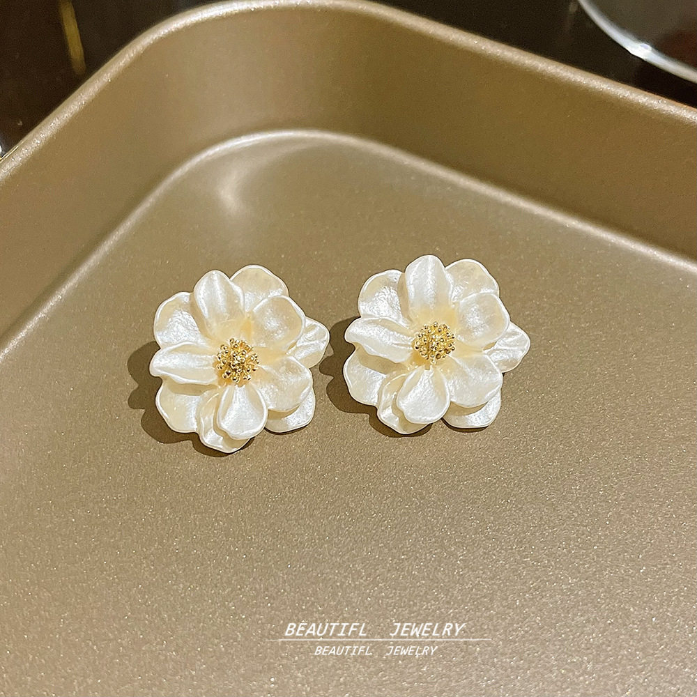 925银针时尚精致山茶花耳钉轻奢高级感小众耳环夏季爆款花朵耳饰