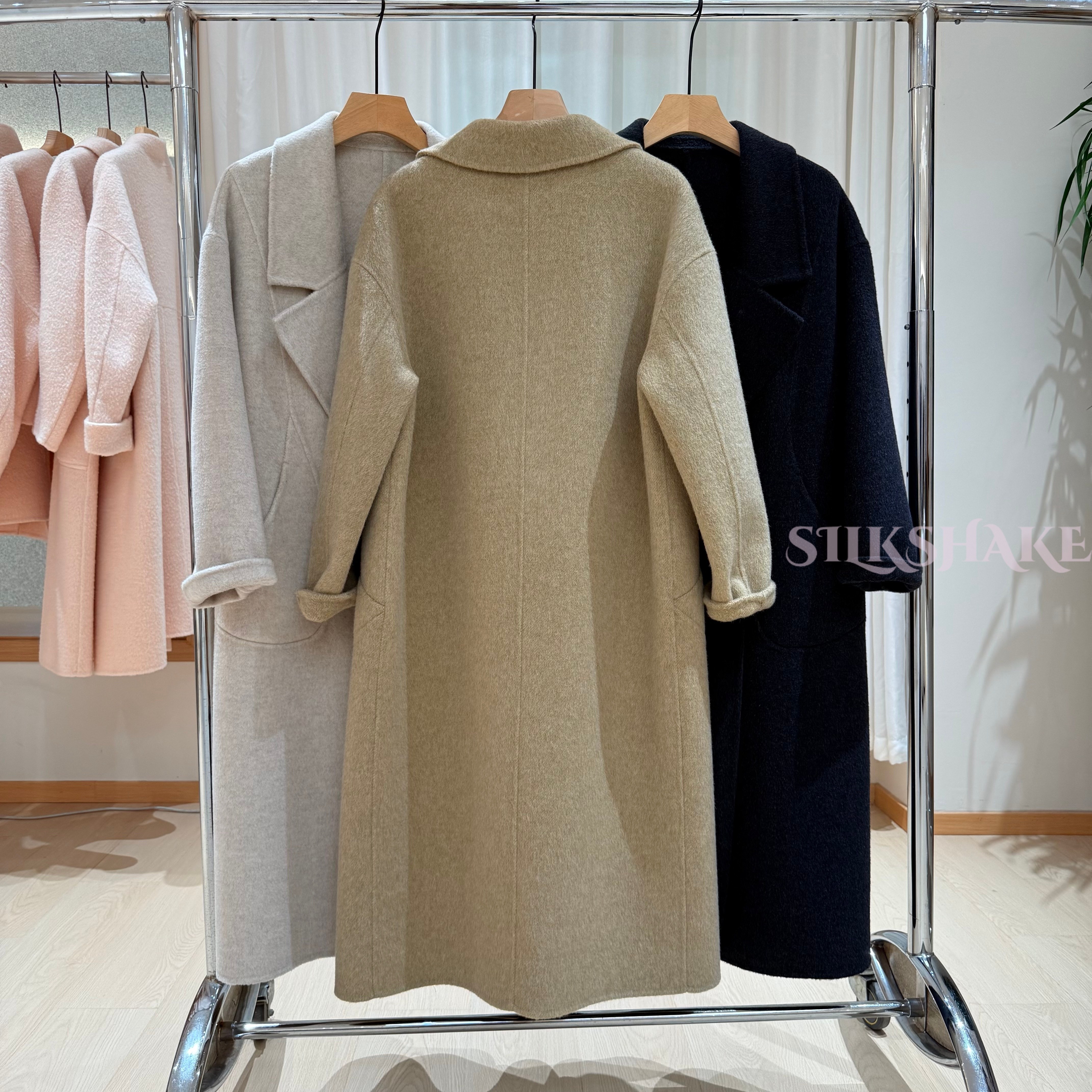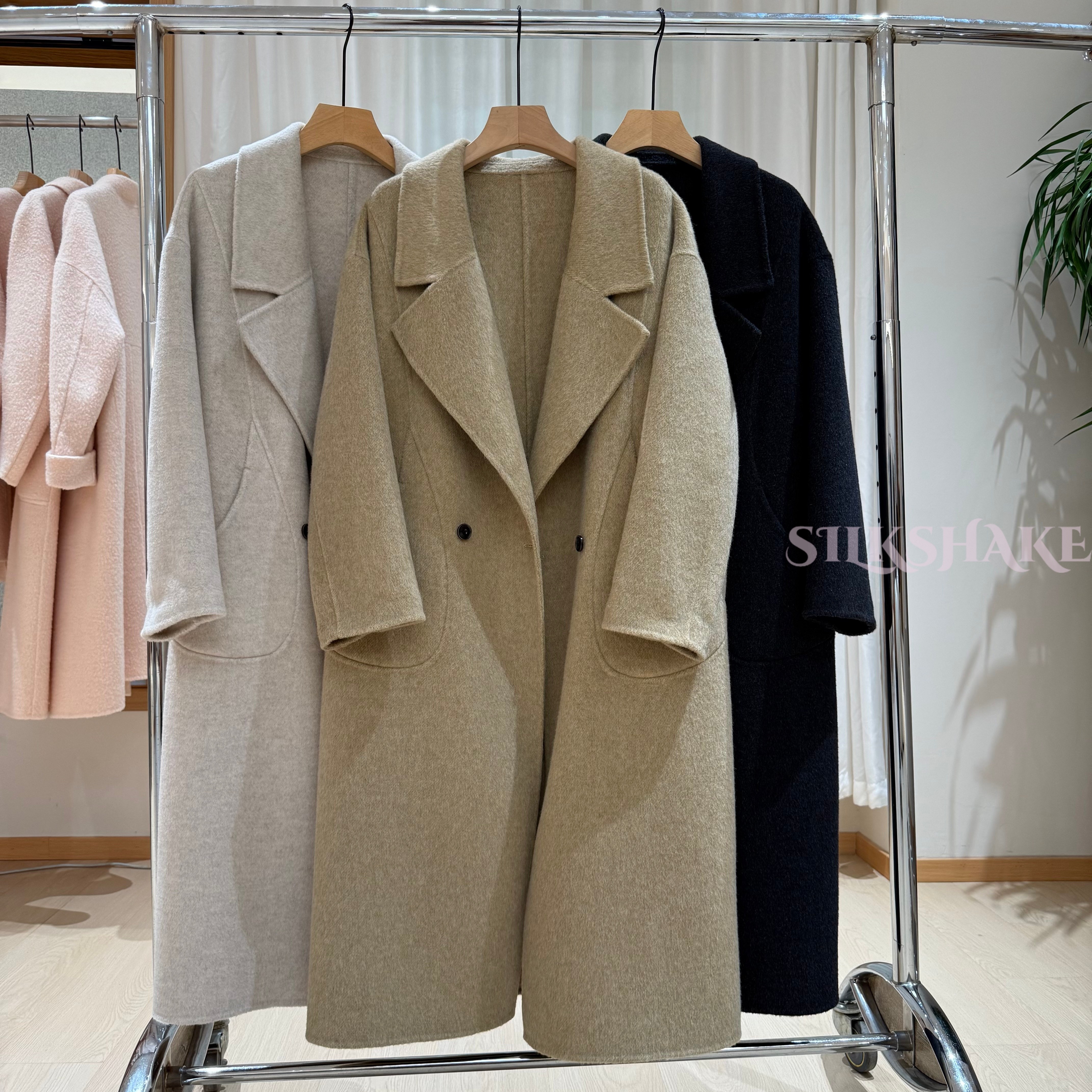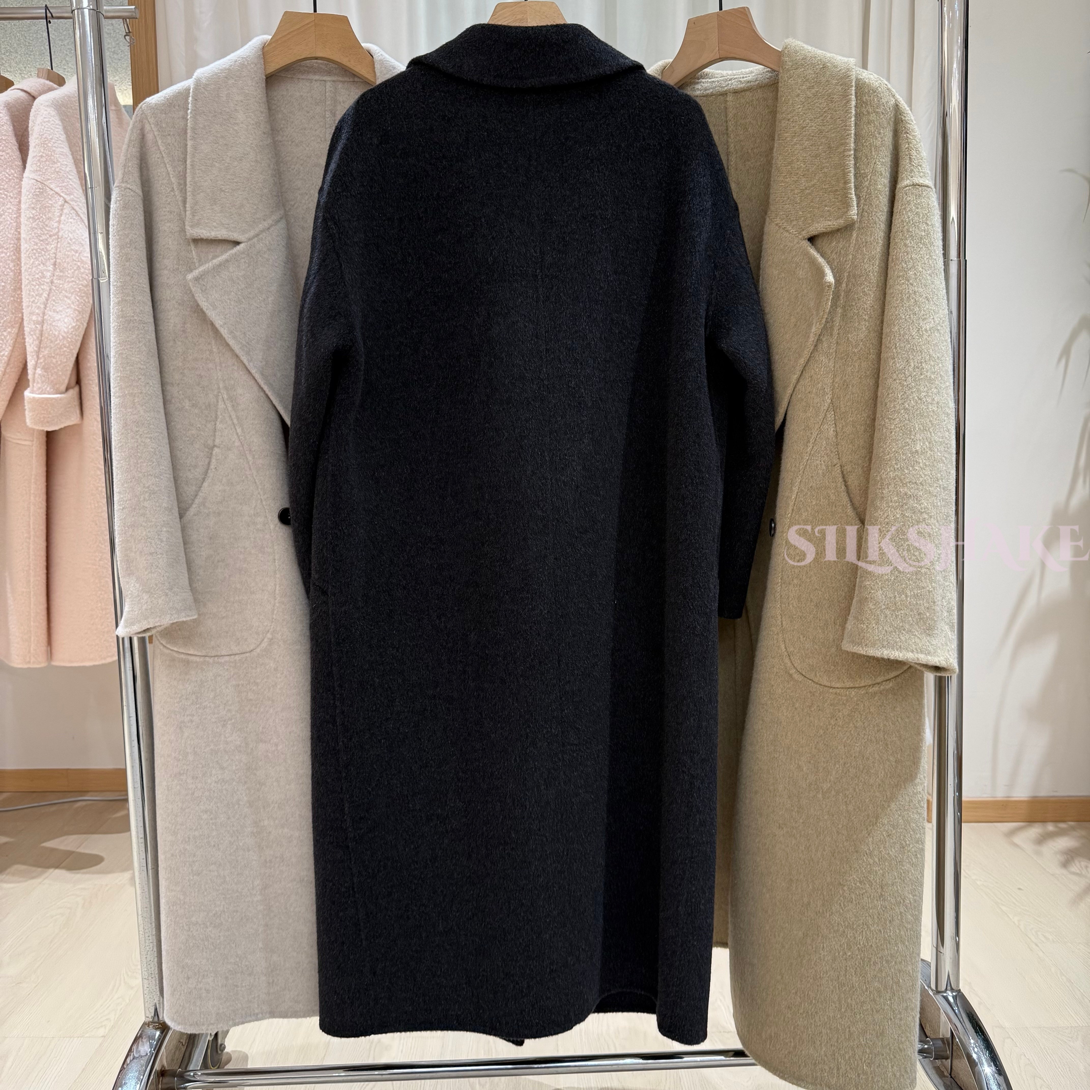 2025新款双面羊绒大衣女中长款过膝高端通勤西装领双排扣呢子外套