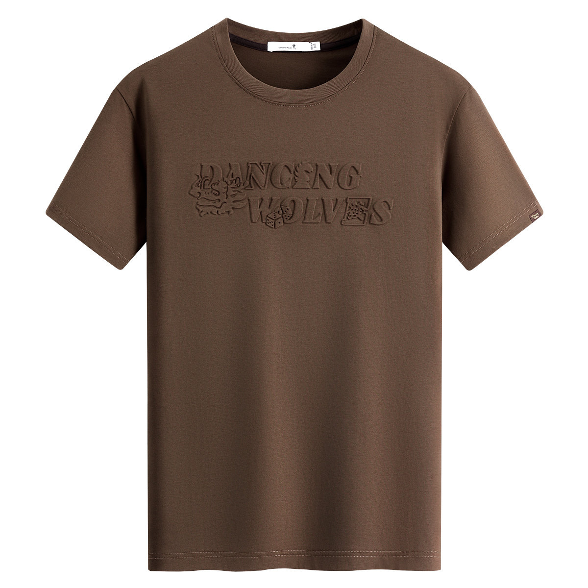 【立体压花】与狼共舞圆领短袖T恤男2025夏季新款弹力透气凉感短T