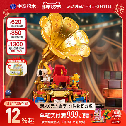 【新年礼物】拼奇积木史努比正版联名演奏派对留声机益智拼搭玩