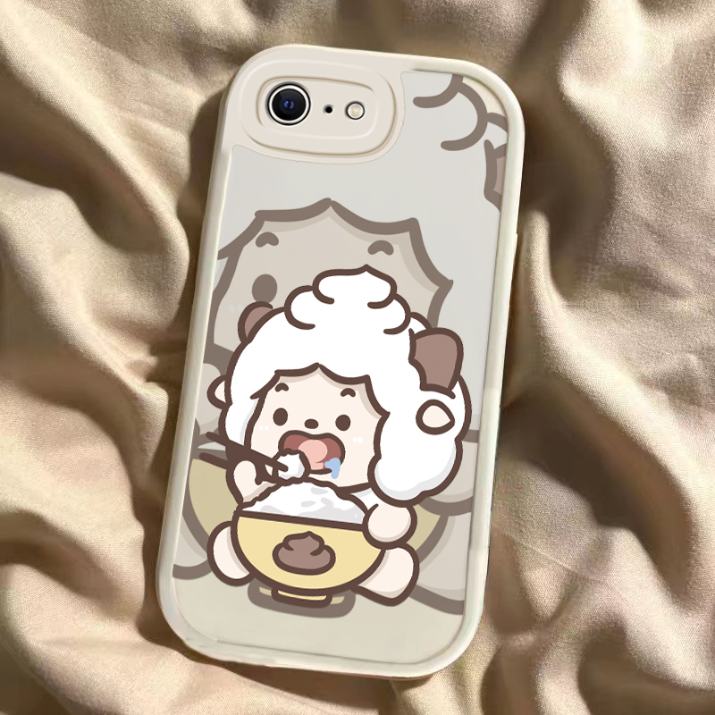 干饭小白羊适用苹果6s/7/8plus手机壳XR新款xsmax软硅胶套11pro全包防摔12mini可爱13PM卡通15个性16钻17女款