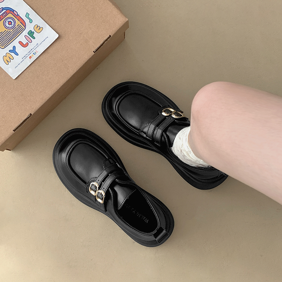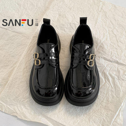 三福法式复古厚底小皮鞋女2025新款秋季百搭配裙子英伦风粗跟单鞋