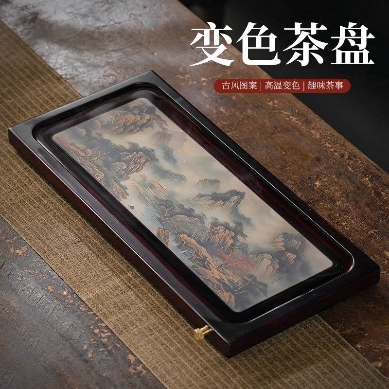遇热变色茶盘竹制小茶台茶具托盘中式家用茶海储水排水两用干泡盘