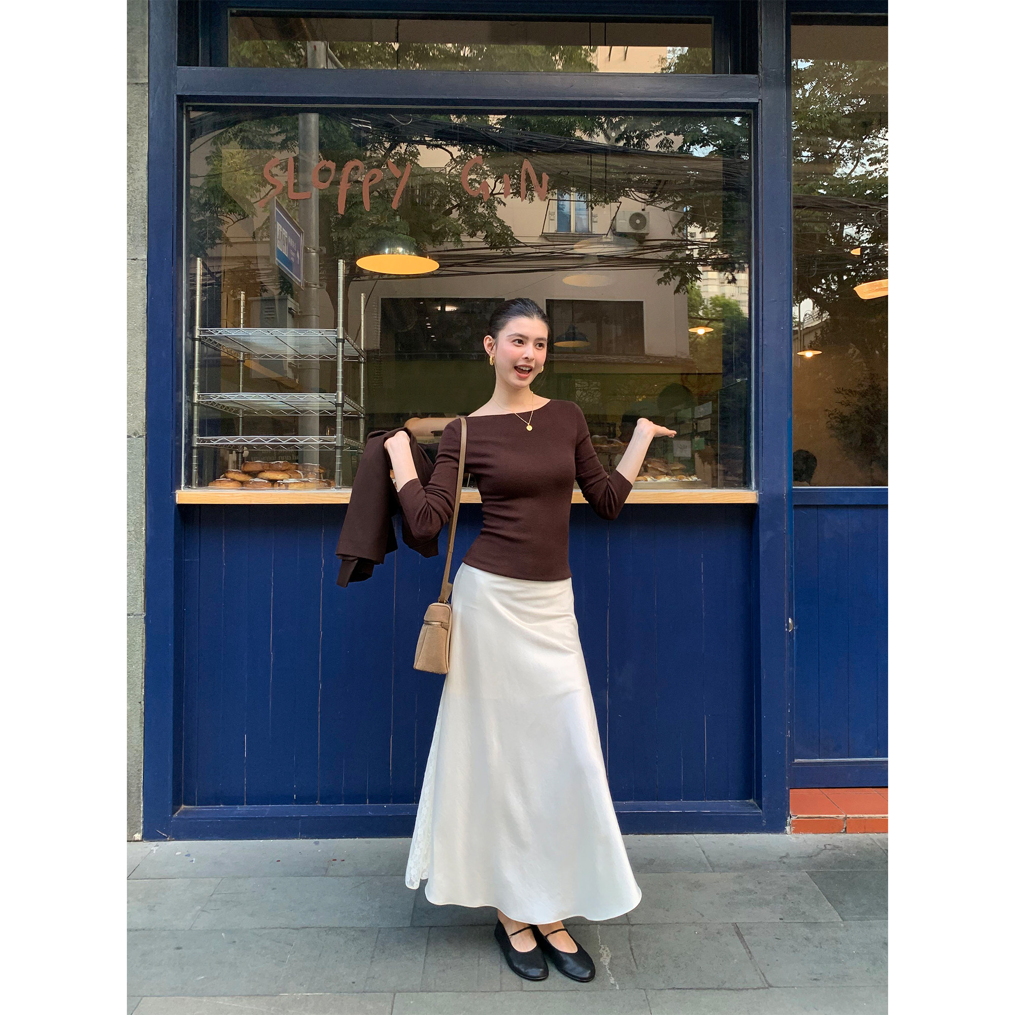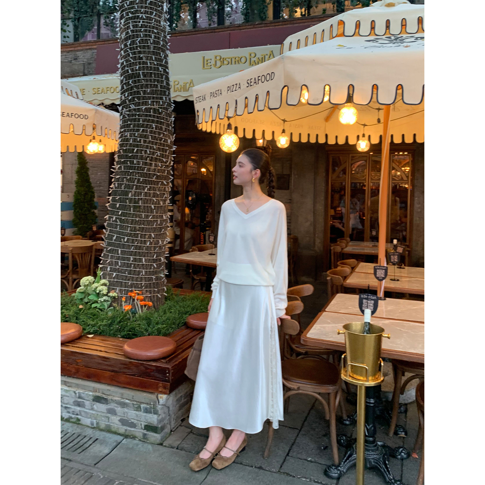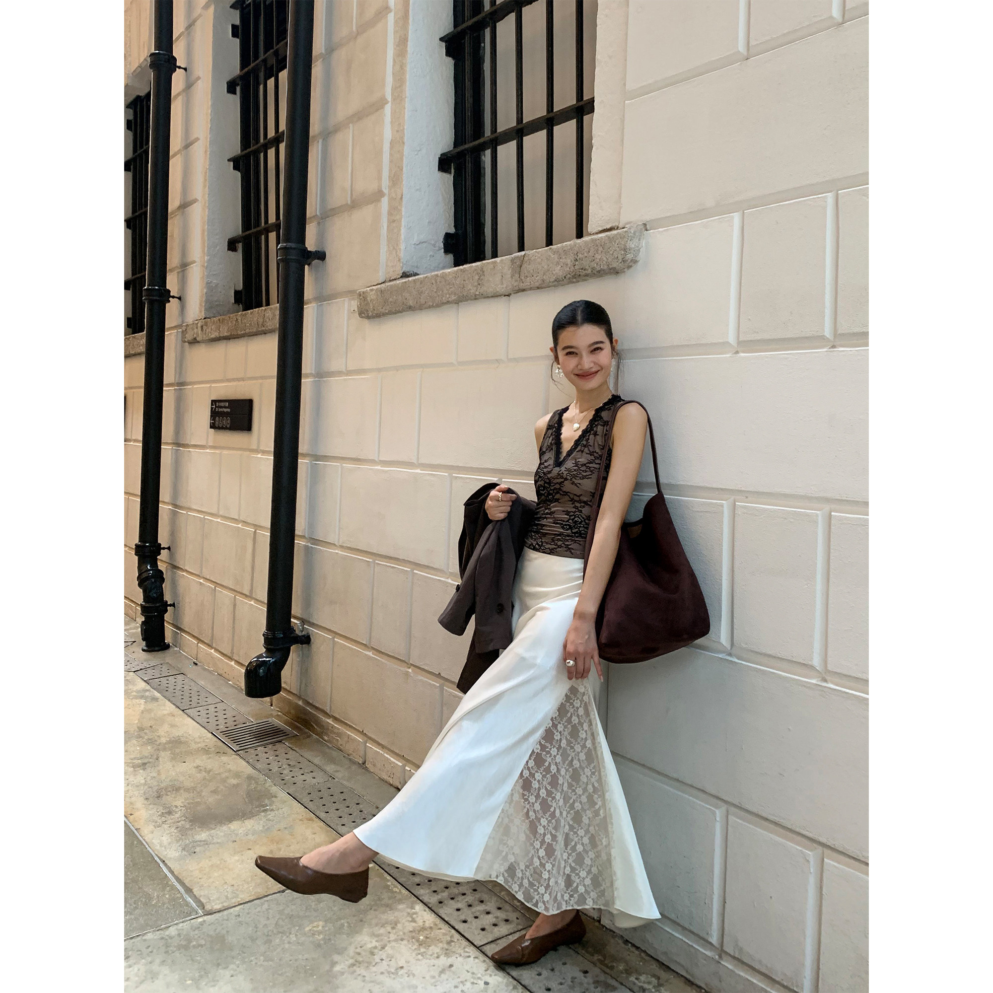 pusumede 时髦姐系 高级蕾丝拼接长款半身裙女设计感A字大摆长裙