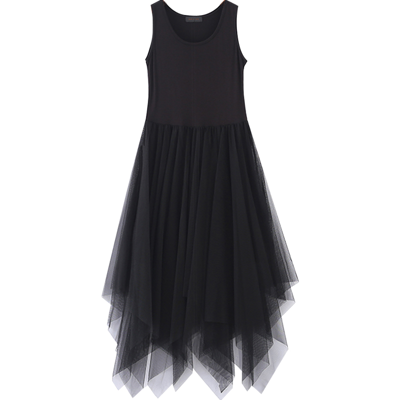黑色打底裙网纱不规则内搭长裙