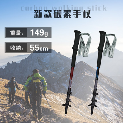 开拓者超轻碳素登山杖 三节碳纤维伸缩手杖 外锁徒步拐杖户外装备