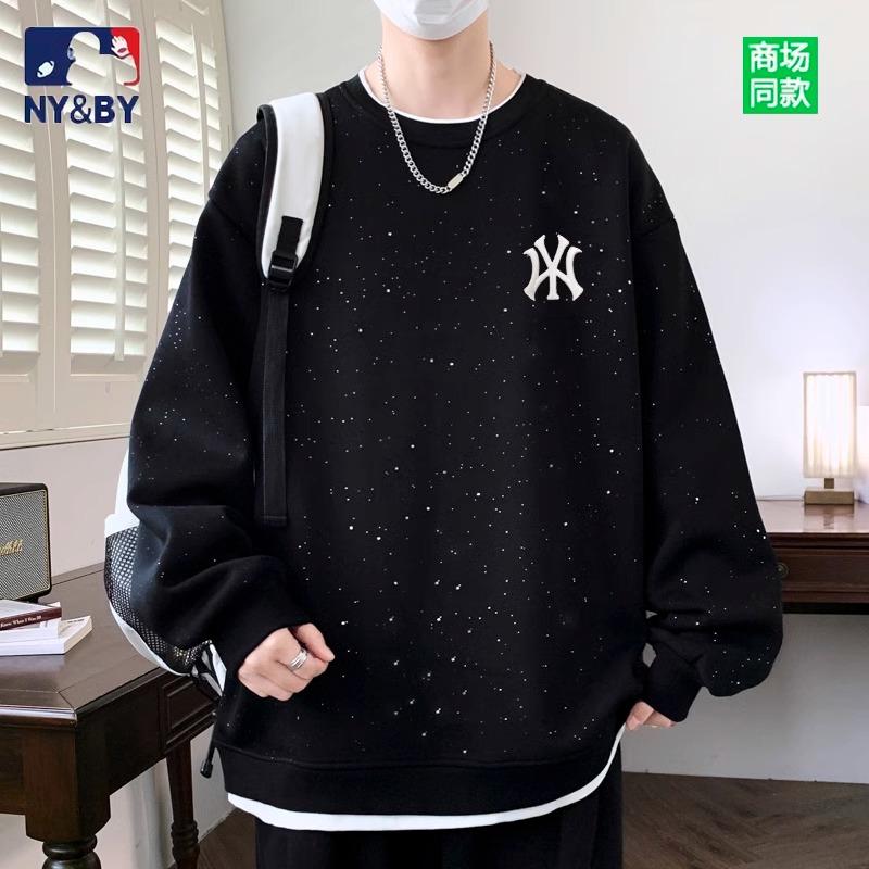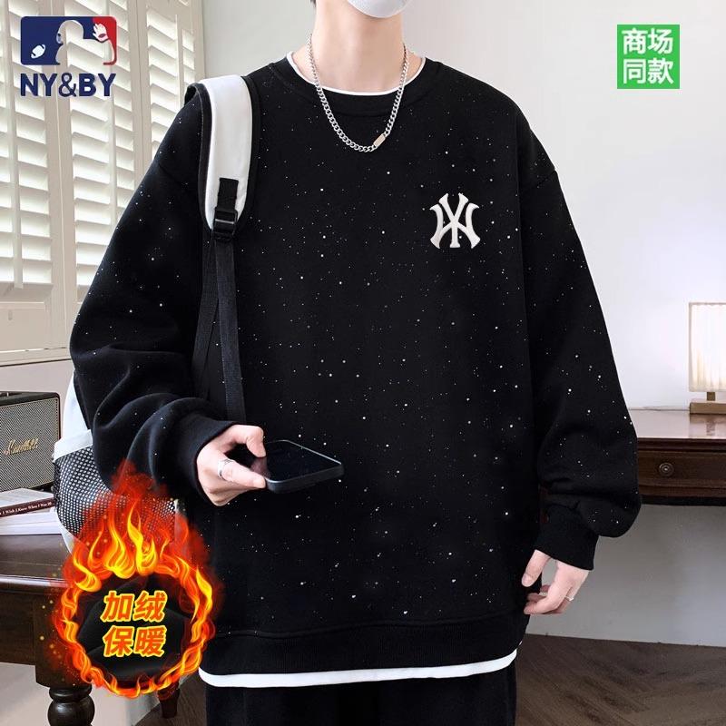 奥特莱斯卫衣男秋冬加绒加厚宽松大码圆领套头长袖t恤满天星上衣