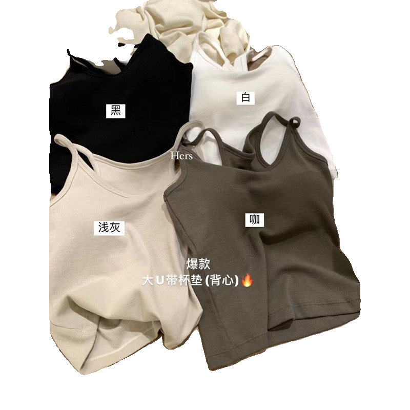 带胸垫大U吊带背心女2025夏季新款防走光遮副乳美背运动百搭外穿