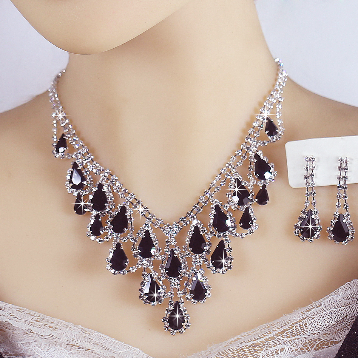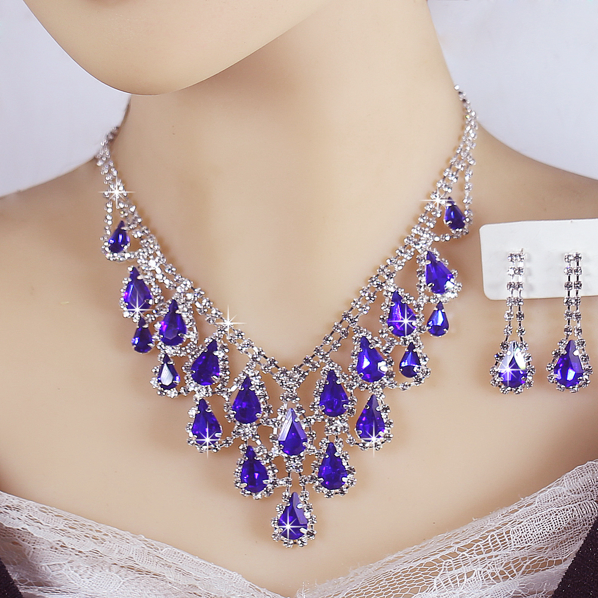 新款新娘水晶满钻项链耳环套装精致高档结婚纱礼服项链配饰品演出