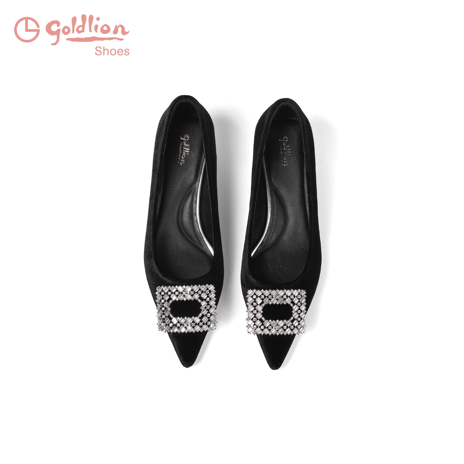 金利来猫跟单鞋女2025夏季新款女鞋舒适百搭黑色尖头细跟浅口单鞋