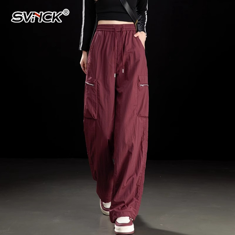 保罗 奢伦多户外登山冲锋裤女显瘦秋冬新款时尚百搭酒红色工装裤