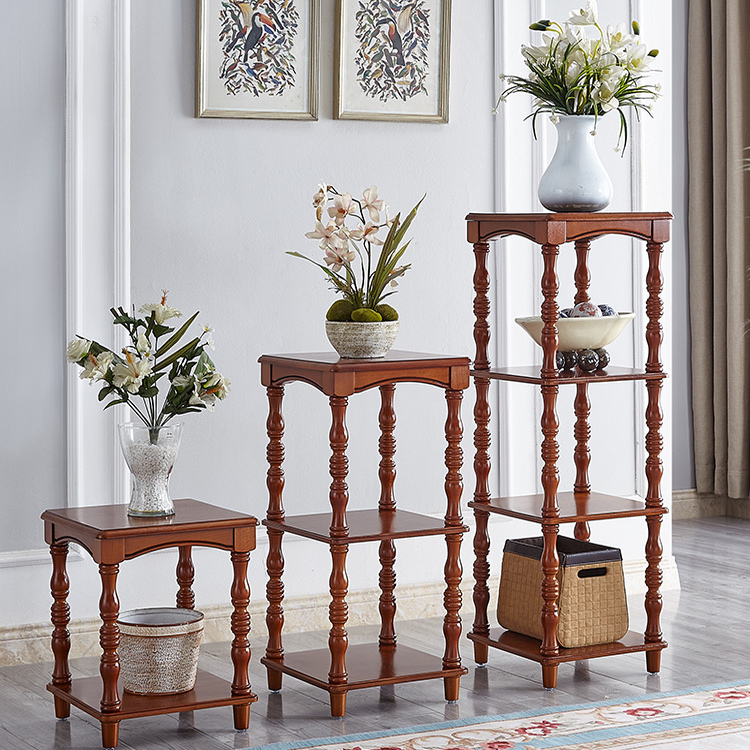 美式实木花架书架阳台置物支架落地花盆摆放架子中式花几立柱新品