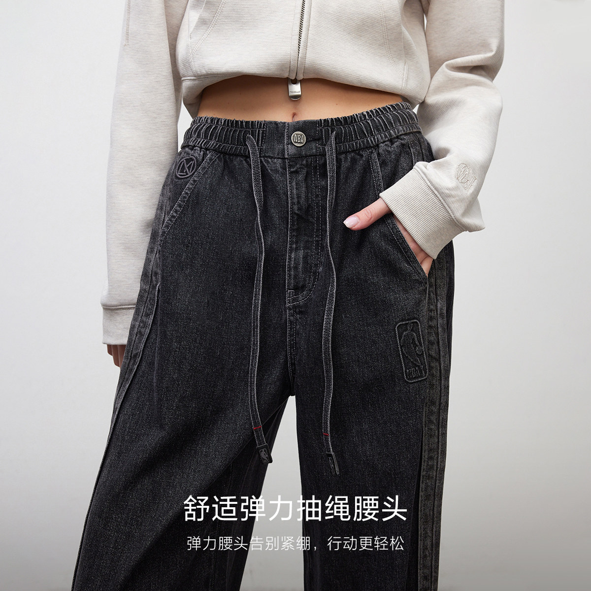 ONLYNBA联名香蕉裤阔腿牛仔裤