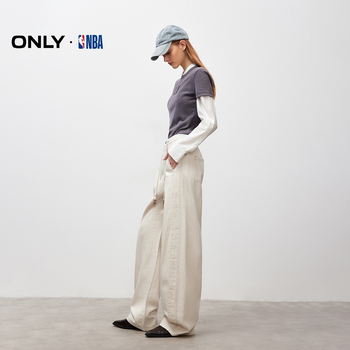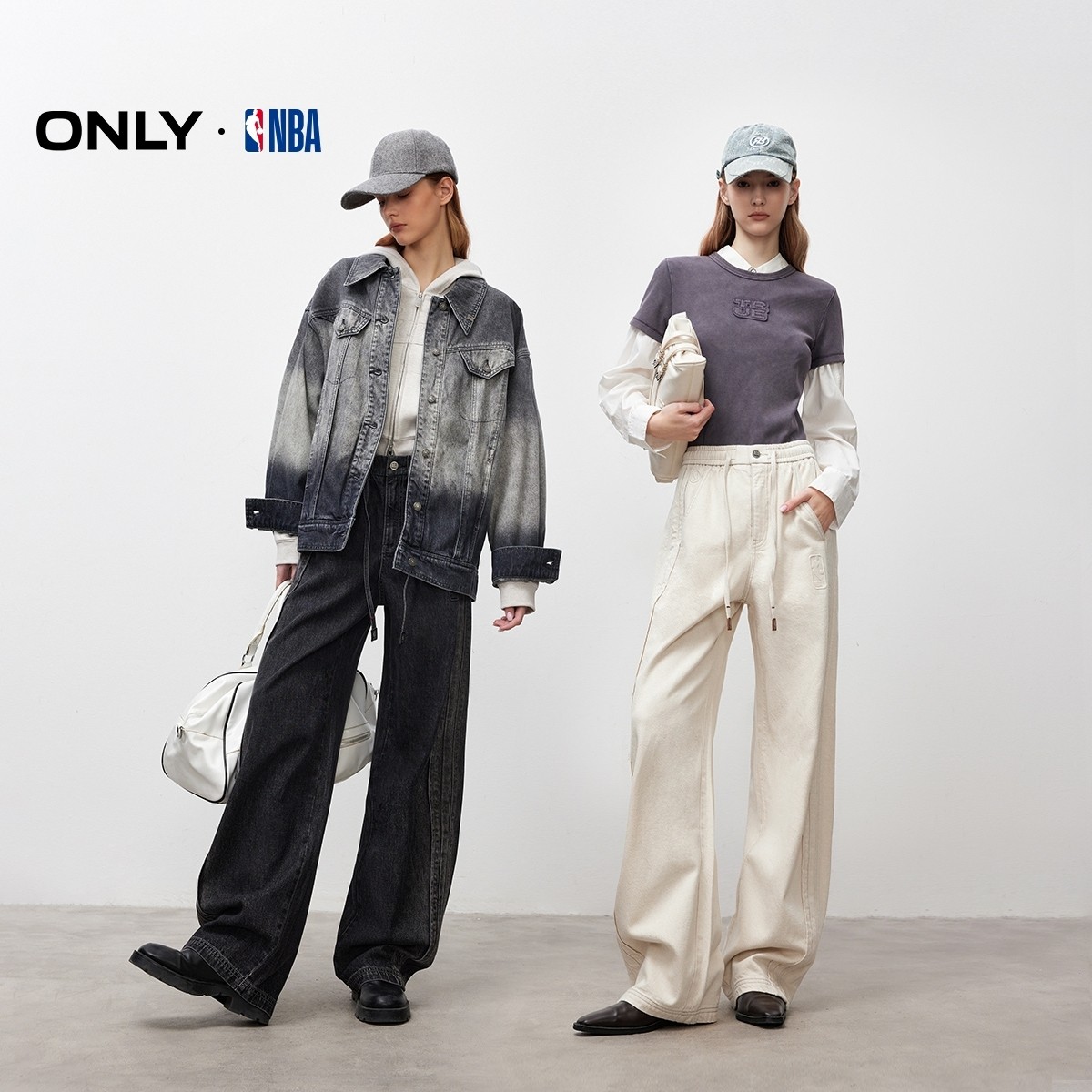 ONLY2025冬季新款NBA联名梨型友好香蕉裤宽松阔腿长裤牛仔裤女